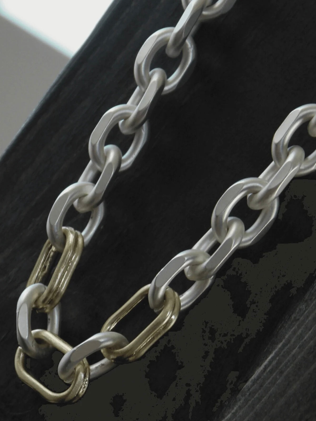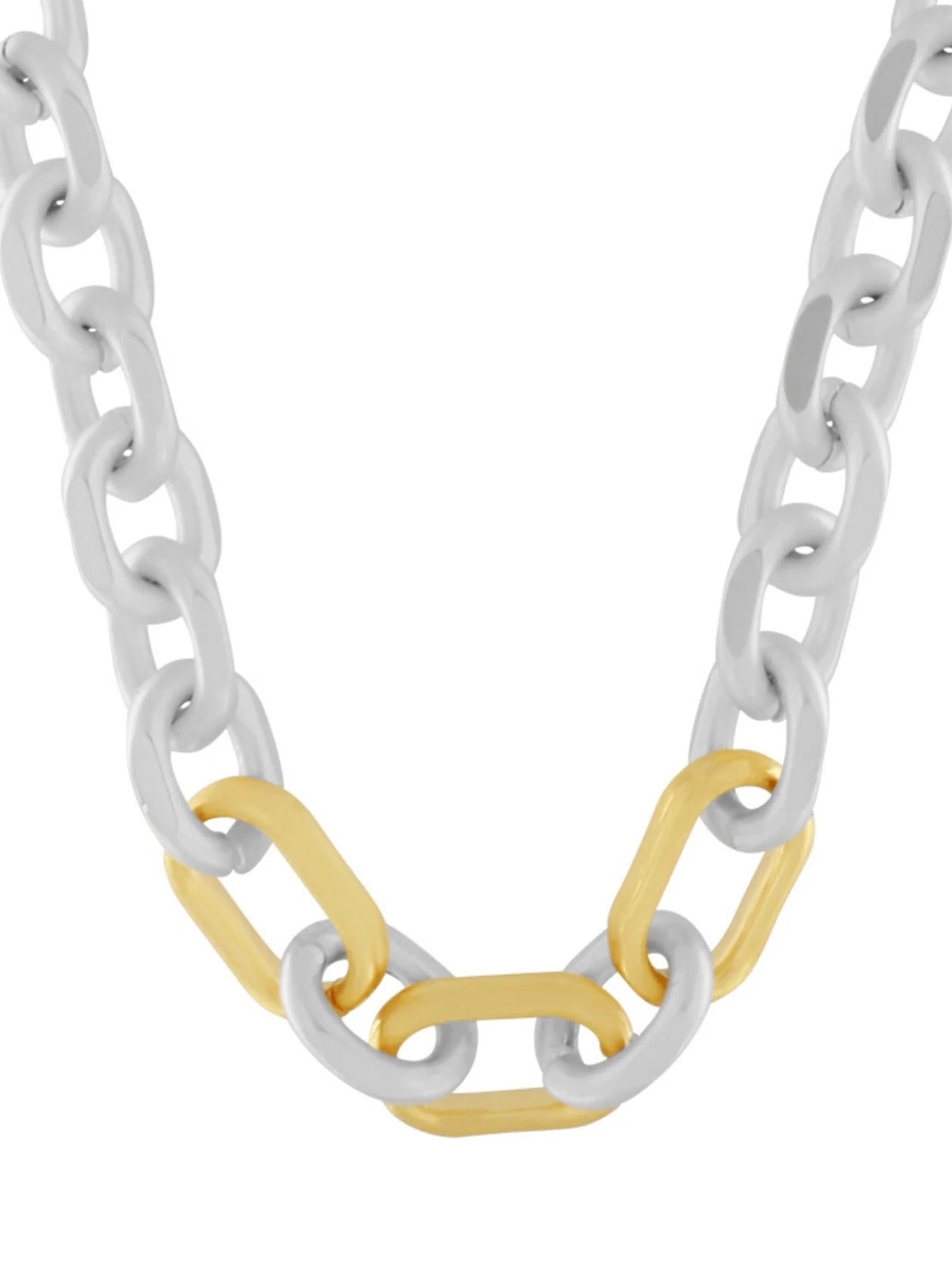 Modische, kurze Halskette aus matt versilbertem und matt vergoldeten Messing. Im 2-Ton Design gearbeitet. Variabel in der Länge einstellbar.