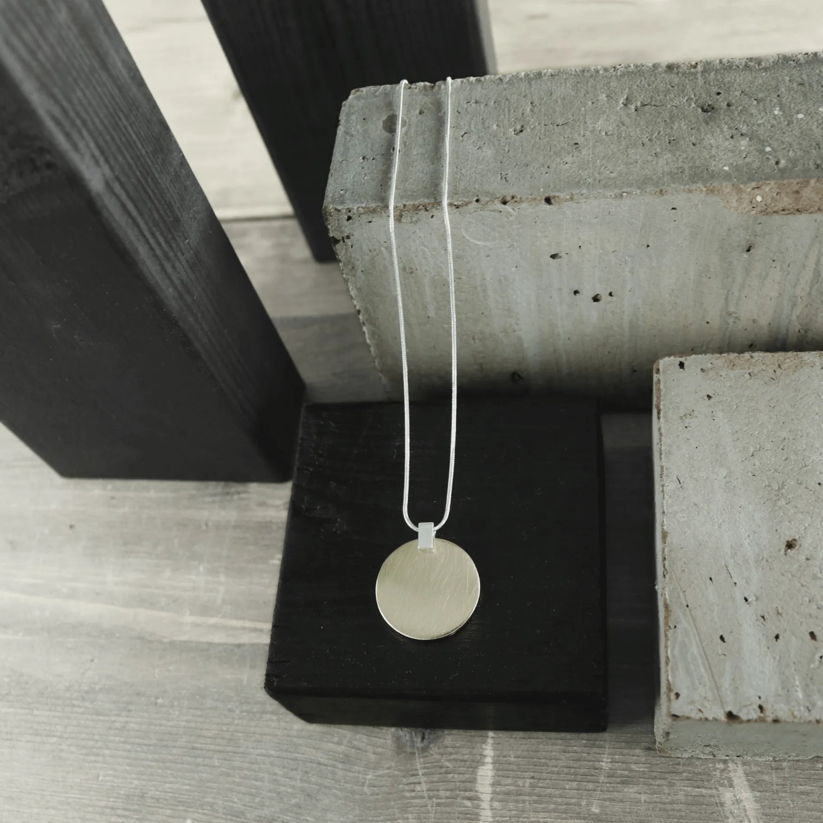 Modische Halskette im 2-Tone Style. Matt versilberter, gebürsteter Anhänger an einer vergoldeten, in der Länge verstellbaren Schlangenkette.