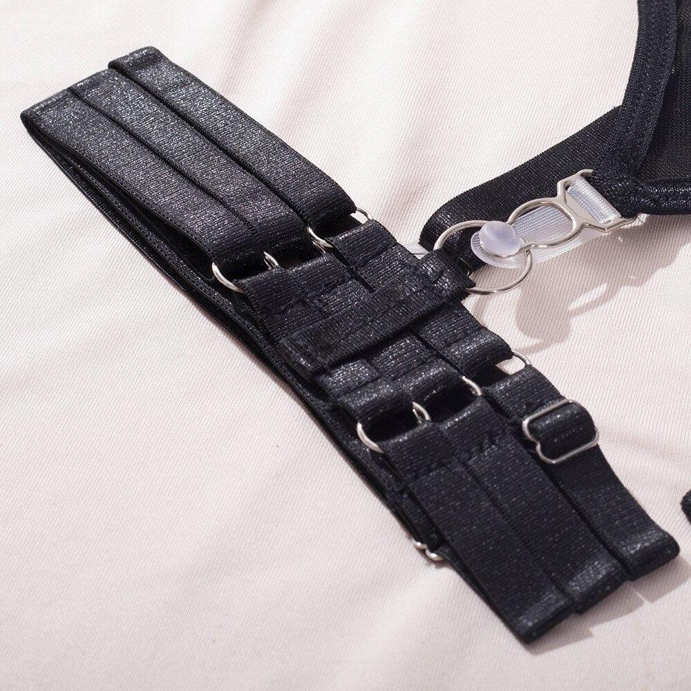 Mit seiner ultra-dünnen Polsterung und dem festen Material betont der Playsuit die Kurven und bietet gleichzeitig eine elegante und sinnliche Ausstrahlung. Der feste Stoff und das verführerische Mesh sorgen für einen aufregenden Look, der sich sowohl für private Momente als auch für spezielle Anlässe eignet.