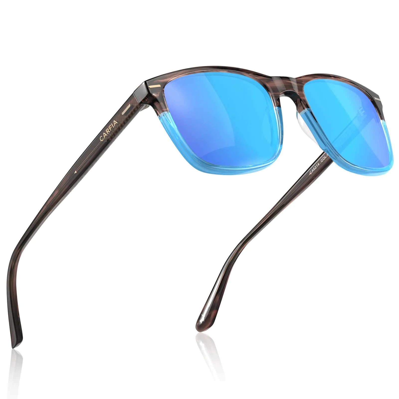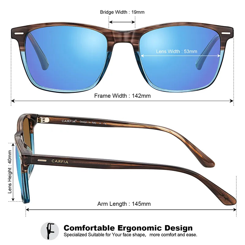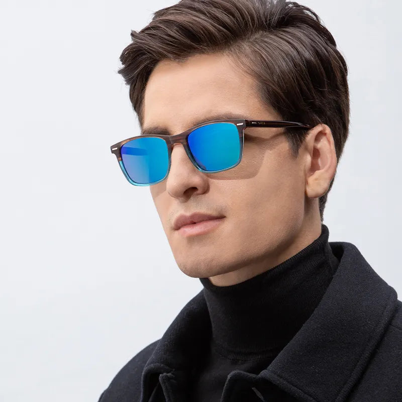 - Acetate Demi Frame Men's Sunglasses - Our sunglasses are made of hand-polished Italian acetate material. In contrast to cheap plastic frames where the color is sprayed on, our glossy frame maintains its color brightness impeccably over time because the hue is inherently embedded in the material. Thus, it resists fading, peeling, yellowing, or other forms of discoloration. The hypoallergenic acetate is also resistant to sweat corrosion, ensuring skin health during outdoor activities.