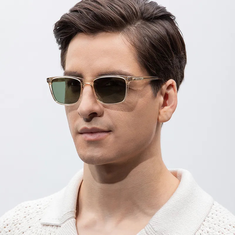 - Acetate Demi Frame Men's Sunglasses - Our sunglasses are made of hand-polished Italian acetate material. In contrast to cheap plastic frames where the color is sprayed on, our glossy frame maintains its color brightness impeccably over time because the hue is inherently embedded in the material. Thus, it resists fading, peeling, yellowing, or other forms of discoloration. The hypoallergenic acetate is also resistant to sweat corrosion, ensuring skin health during outdoor activities.