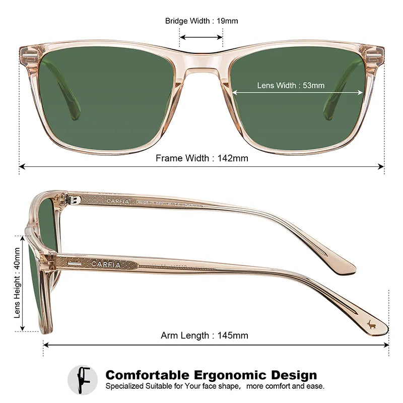 - Men's Sunglasses with Polarized UV Protection - Our men's polarized sunglasses are effective UV filters, blocking 100% of harmful UVA/UVB rays up to 400nm. They protect your eyes from squinting, fatigue, and wrinkles. Compared to traditional TAC lenses, our HD lenses also eliminate 99% of glare without haze and optical distortion. They then provide vibrant, saturated colors, crisp clarity, and unsurpassed details. Truly essential for driving, traveling, sunbathing, or other outdoor activities.