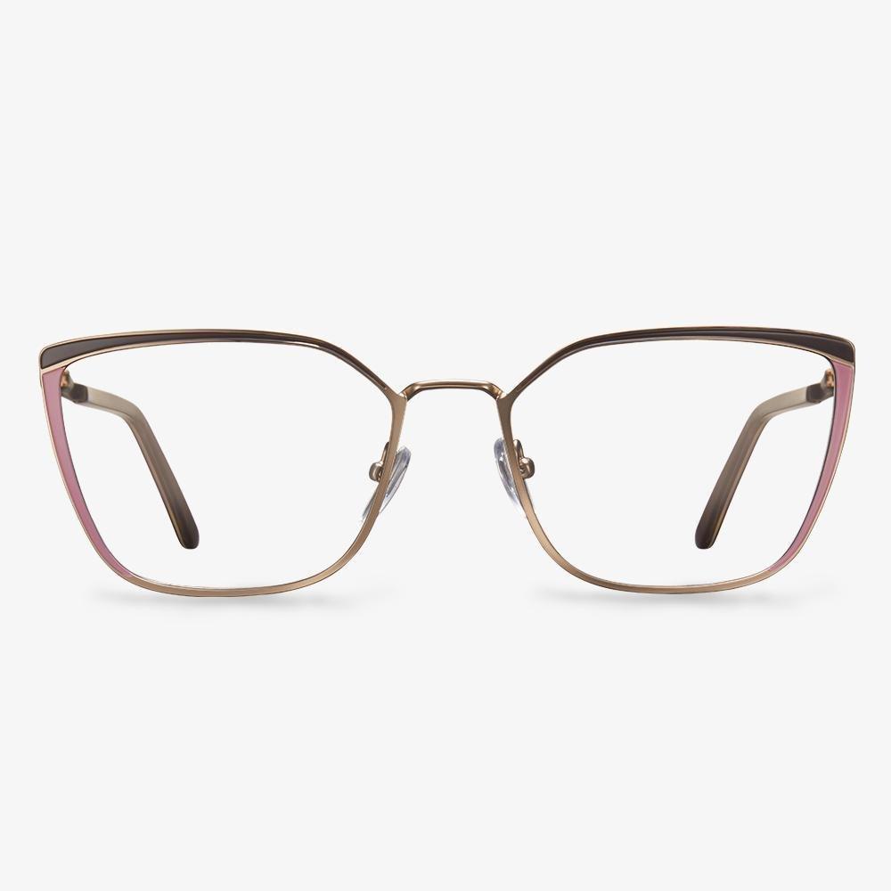 This is a modern frame that combines the characteristic of geometric frames and browline frames. This modern pair of glasses has taken some style cues from the past. It further breaks the boundaries of the browline frame. The bright-colored metal frame is used to surround the geometric lens, which adds a unique charm to the whole shape.