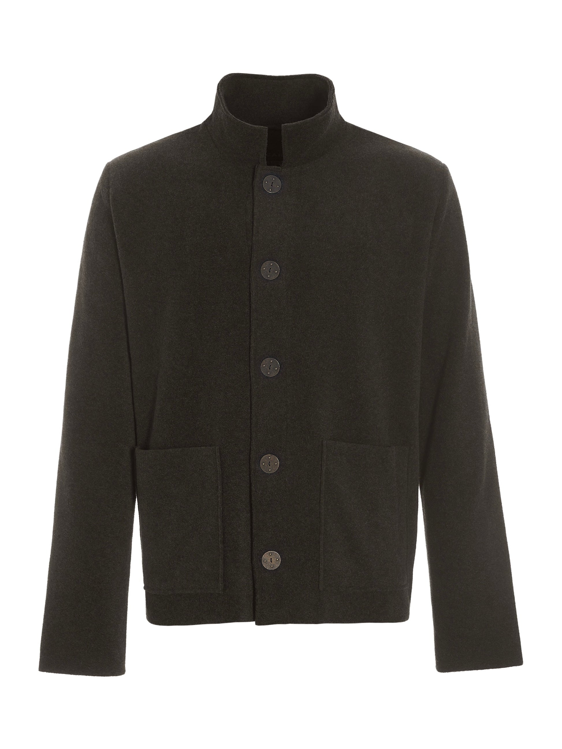 - mit Stehkragen, aufgesetzten Taschen und Knopfleiste