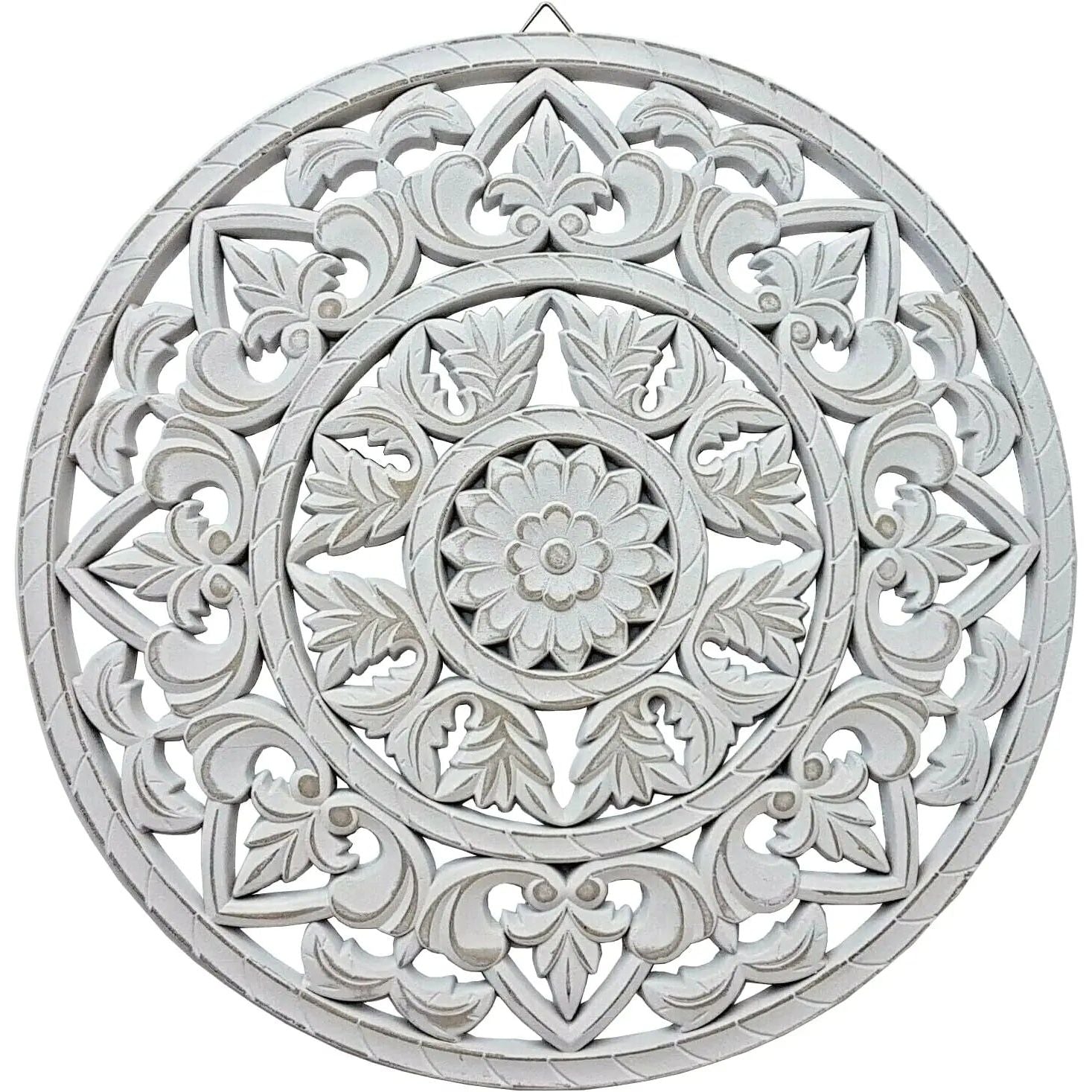 Holzbild Wand Wandbild Holz weiß Ornament Wandornament Wanddeko 35 cm shabby