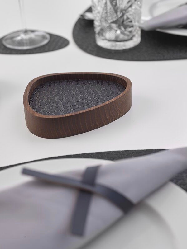 Praktische Aufbewahungsbox für die CURVE Untersetzer von LindDNA. Sie ist aufwändig aus echtem Holz gearbeitet und fasst bis zu 12 Lederuntersetzer. Die ausgefallene Form setzt einen besonderen Akzent. Auch als Dekobox oder für Snacks zu nutzen.