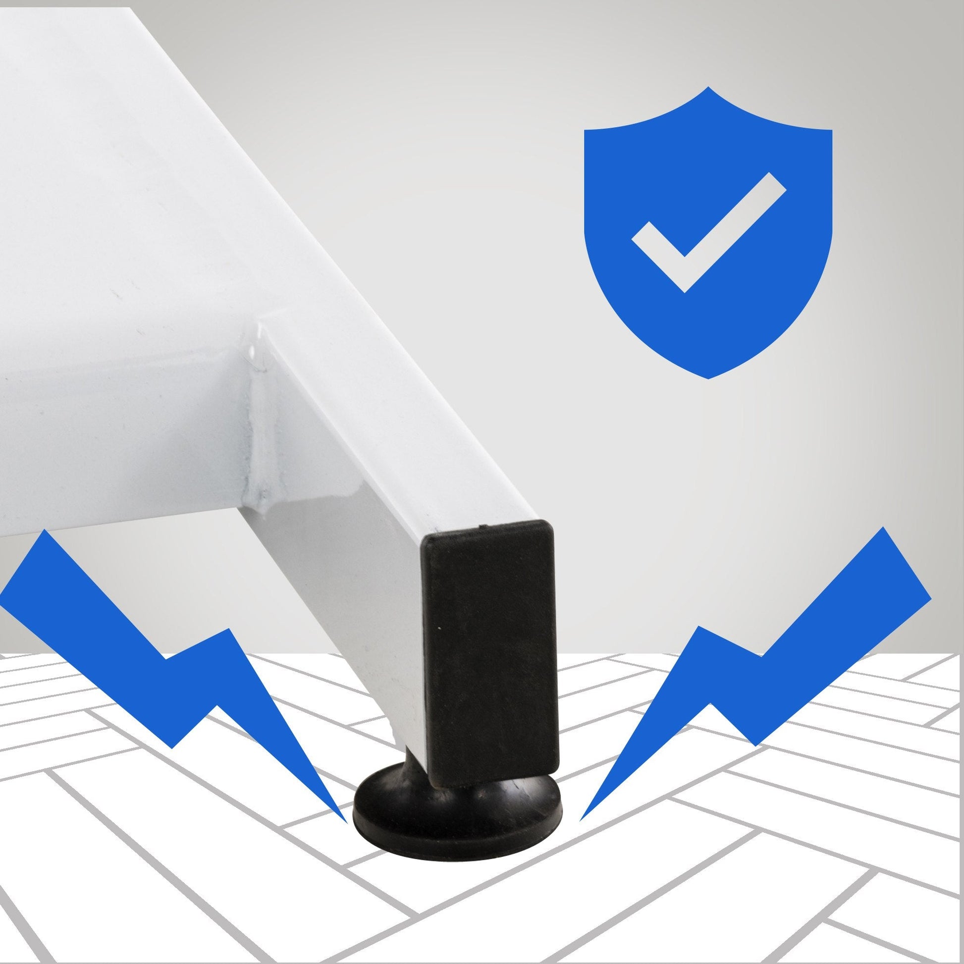 - Geteilte Fußelemente, ebenfalls waagerecht positionierbar