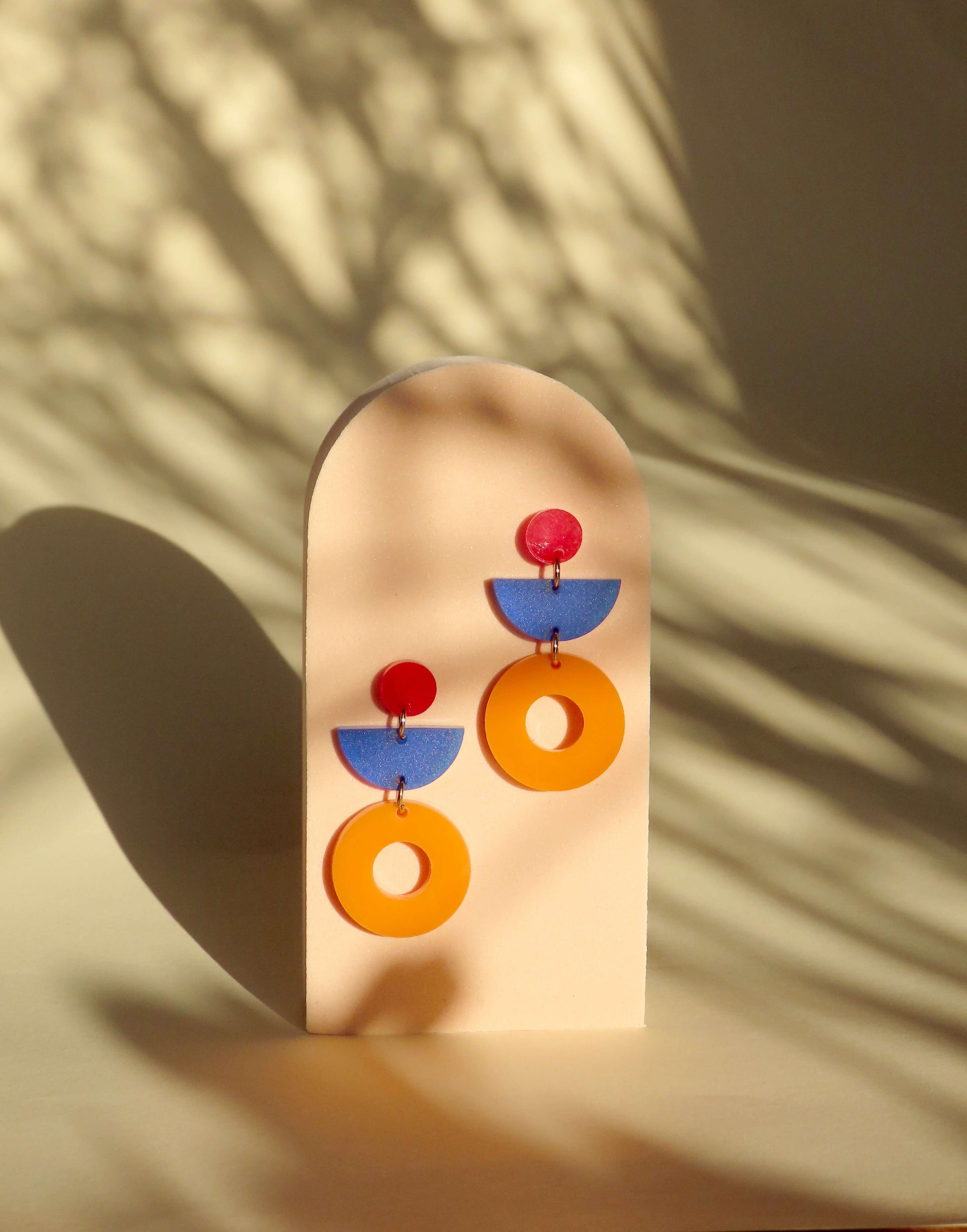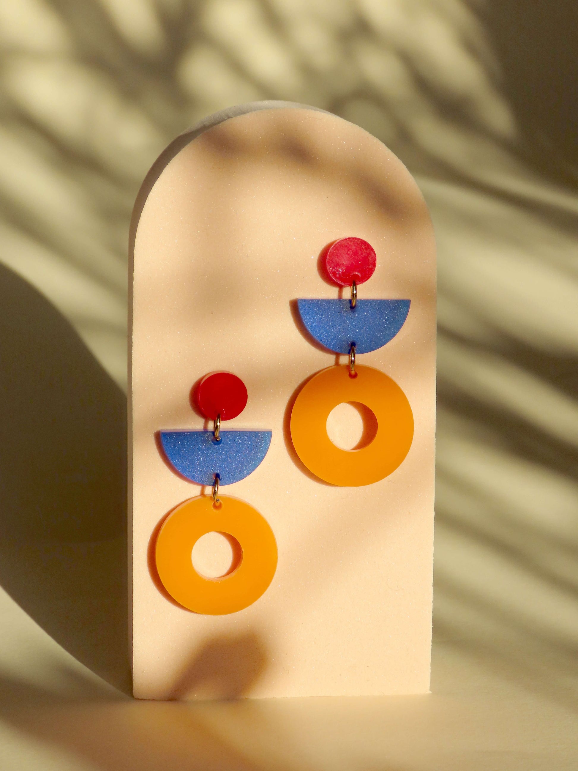 Jaqui Statement Ohrringe in rot, blau, orange