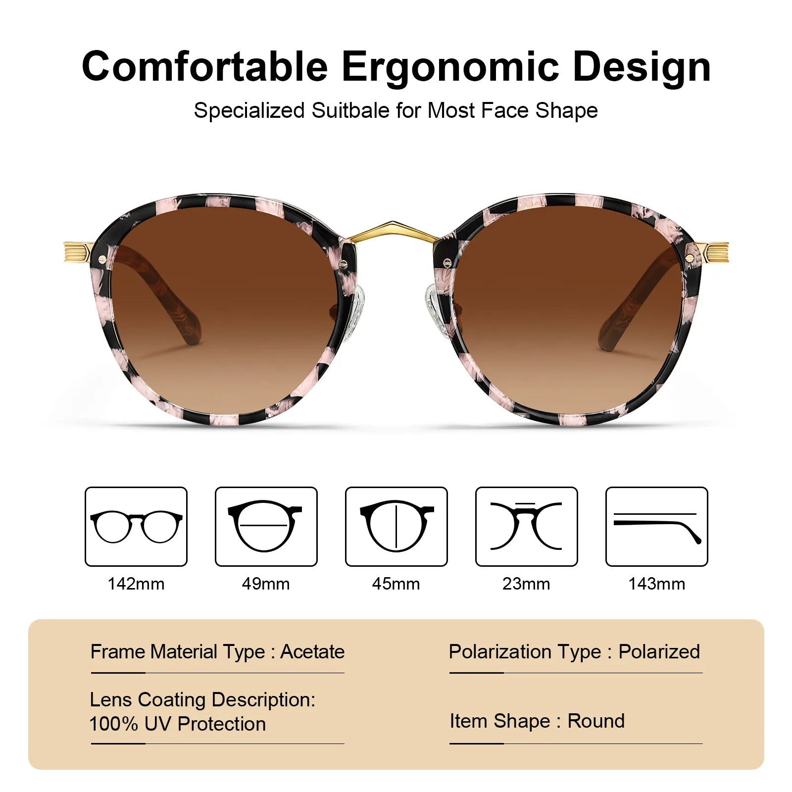 Women's Sunglasses Polarized UV Protection - Our polarized women's sunglasses can block 100% UVA/UVB rays up to 400nm for your eye's health. Polarized lenses also eliminate 99% blinding glare reflected from various surfaces, offer vibrant saturated color, crisp clarity, and unsurpassed detail.