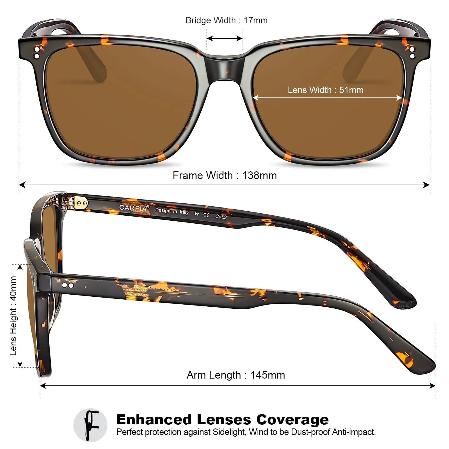 - Imported Italian Acetate Frame - Plastic frames often have a pungent smell, the coating pattern may peel in a short time & they are easy to break, so you can now choose CARFIA handmade plant-based acetate frame, which is strong, flexible and hypoallergenic for your all-day safety & comfort.