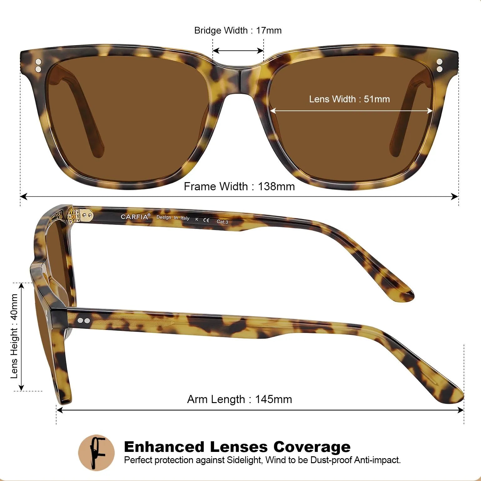 - Imported Italian Acetate Frame - Plastic frames often have a pungent smell, the coating pattern may peel in a short time & they are easy to break, so you can now choose CARFIA handmade plant-based acetate frame, which is strong, flexible and hypoallergenic for your all-day safety & comfort.