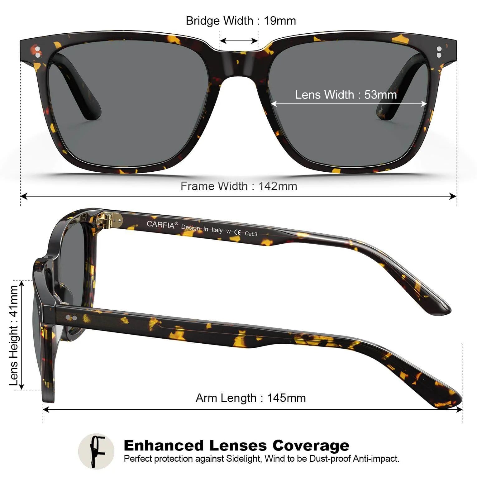- Imported Italian Acetate Frame - Plastic frames often have a pungent smell, the coating pattern may peel in a short time & they are easy to break, so you can now choose CARFIA handmade plant-based acetate frame, which is strong, flexible and hypoallergenic for your all-day safety & comfort.