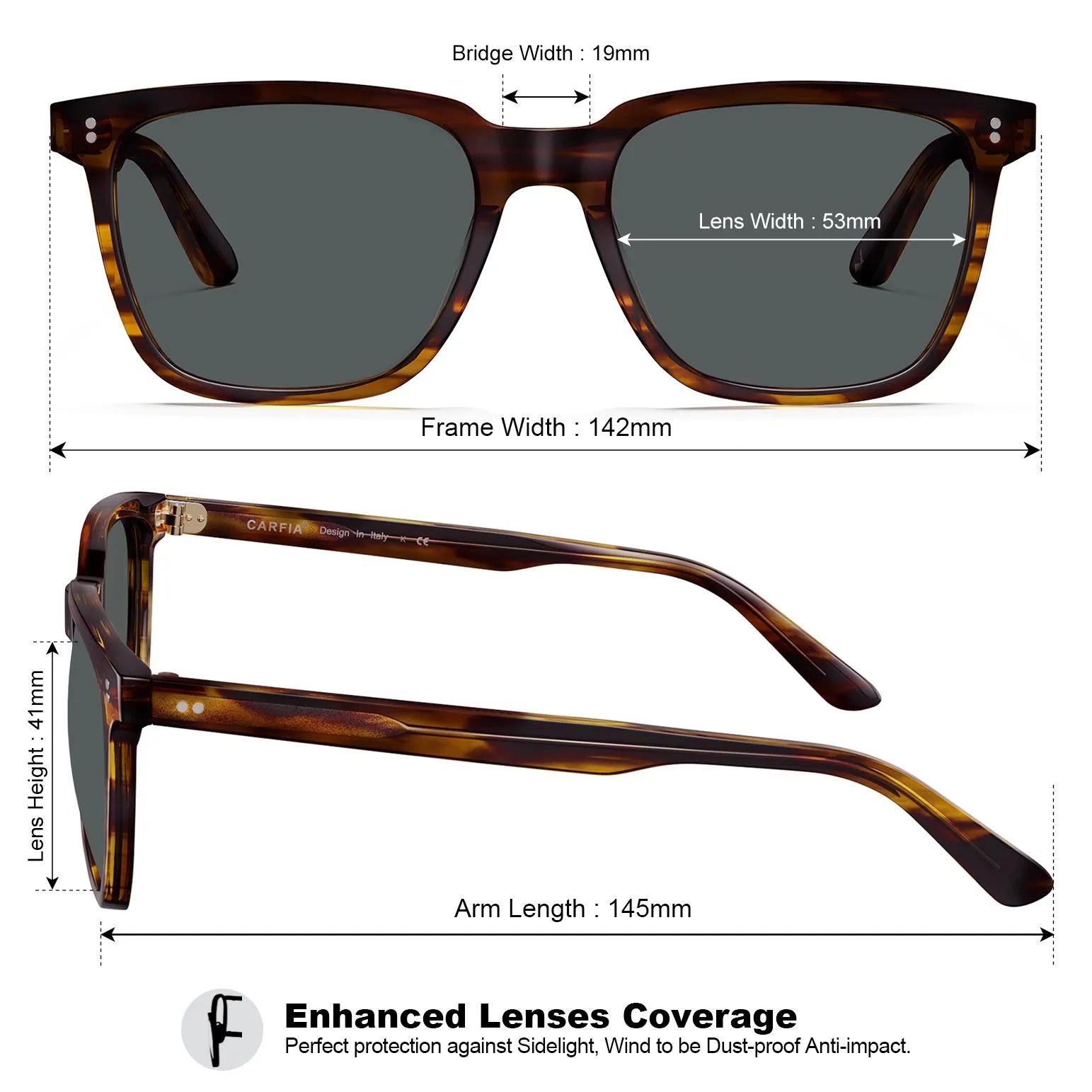 - Imported Italian Acetate Frame - Plastic frames often have a pungent smell, the coating pattern may peel in a short time & they are easy to break, so you can now choose CARFIA handmade plant-based acetate frame, which is strong, flexible and hypoallergenic for your all-day safety & comfort.