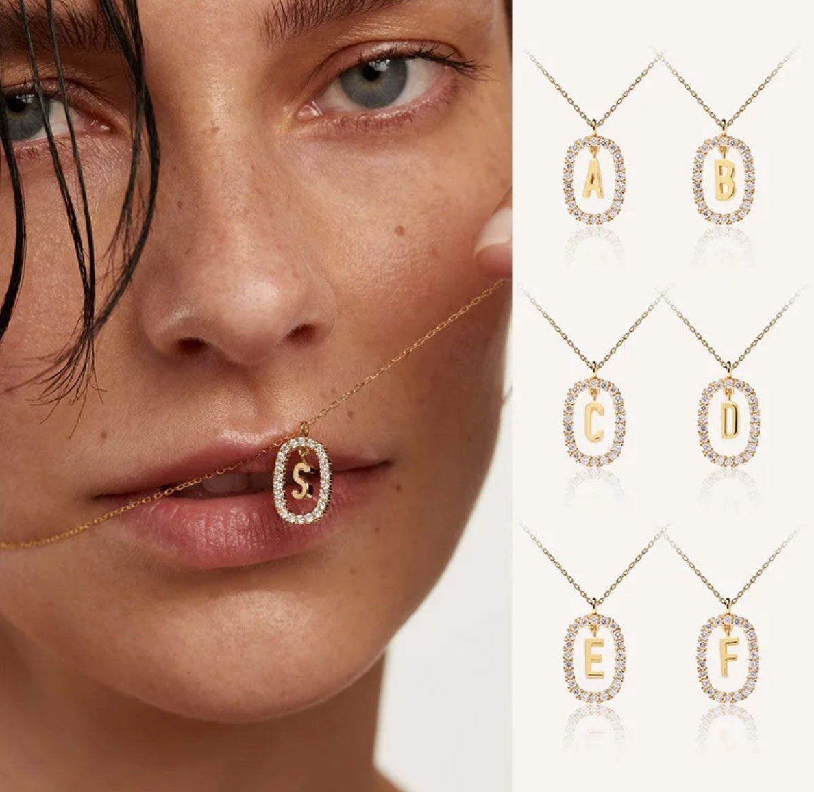 Kette mit Anhänger aus 925er Sterling-Silber, verschiedene Buchstaben im Strasskreis, 45cm