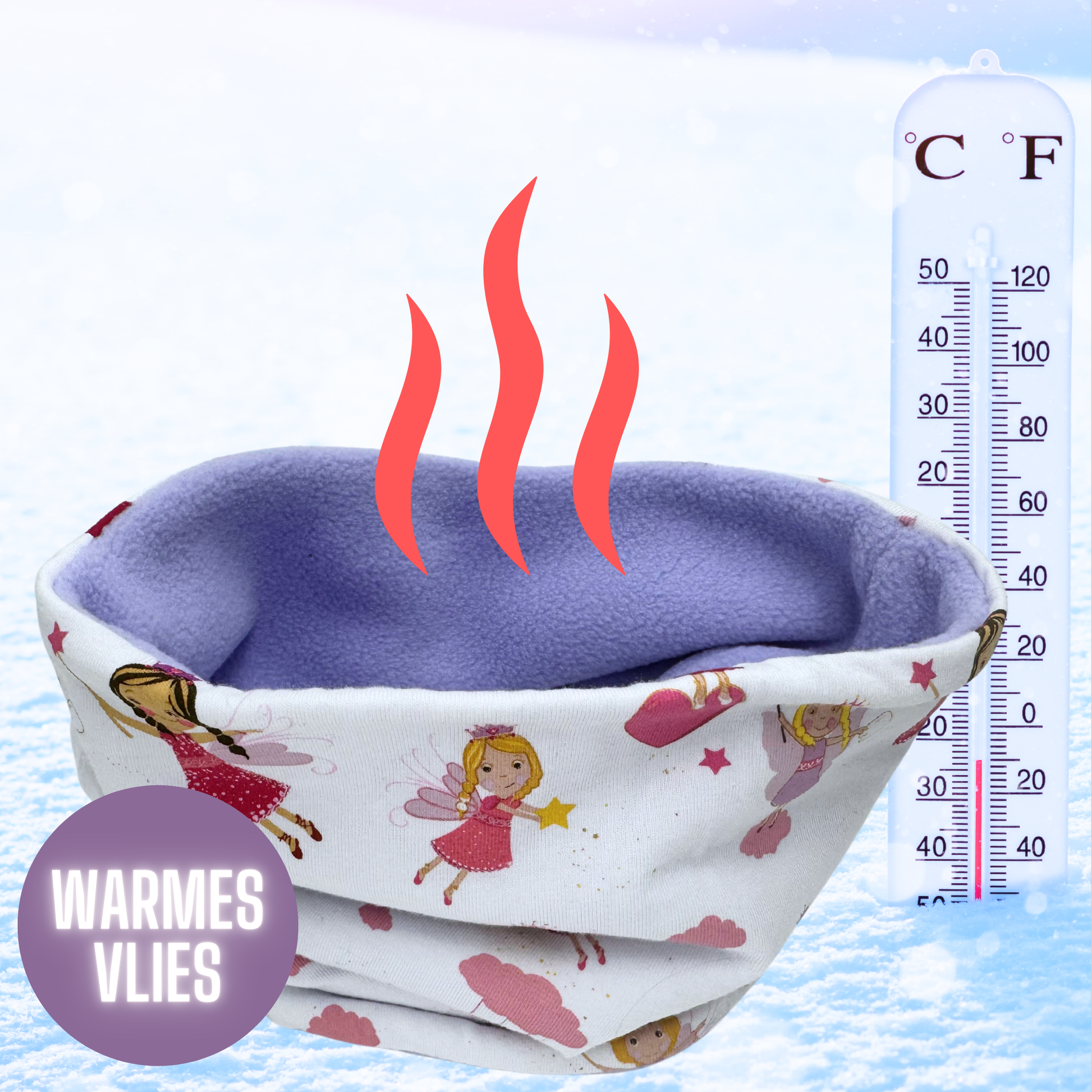 Ideal für frostige Tage: Dieses Set hält dank flauschigem Vlies-Futter Kopf und Hals angenehm warm und schützt zuverlässig vor Kälte und Wind. Das zarte Feen-Design macht es zum zauberhaften Begleiter für Mädchen und Jungen von ca. 2–6 Jahren 👧🧒