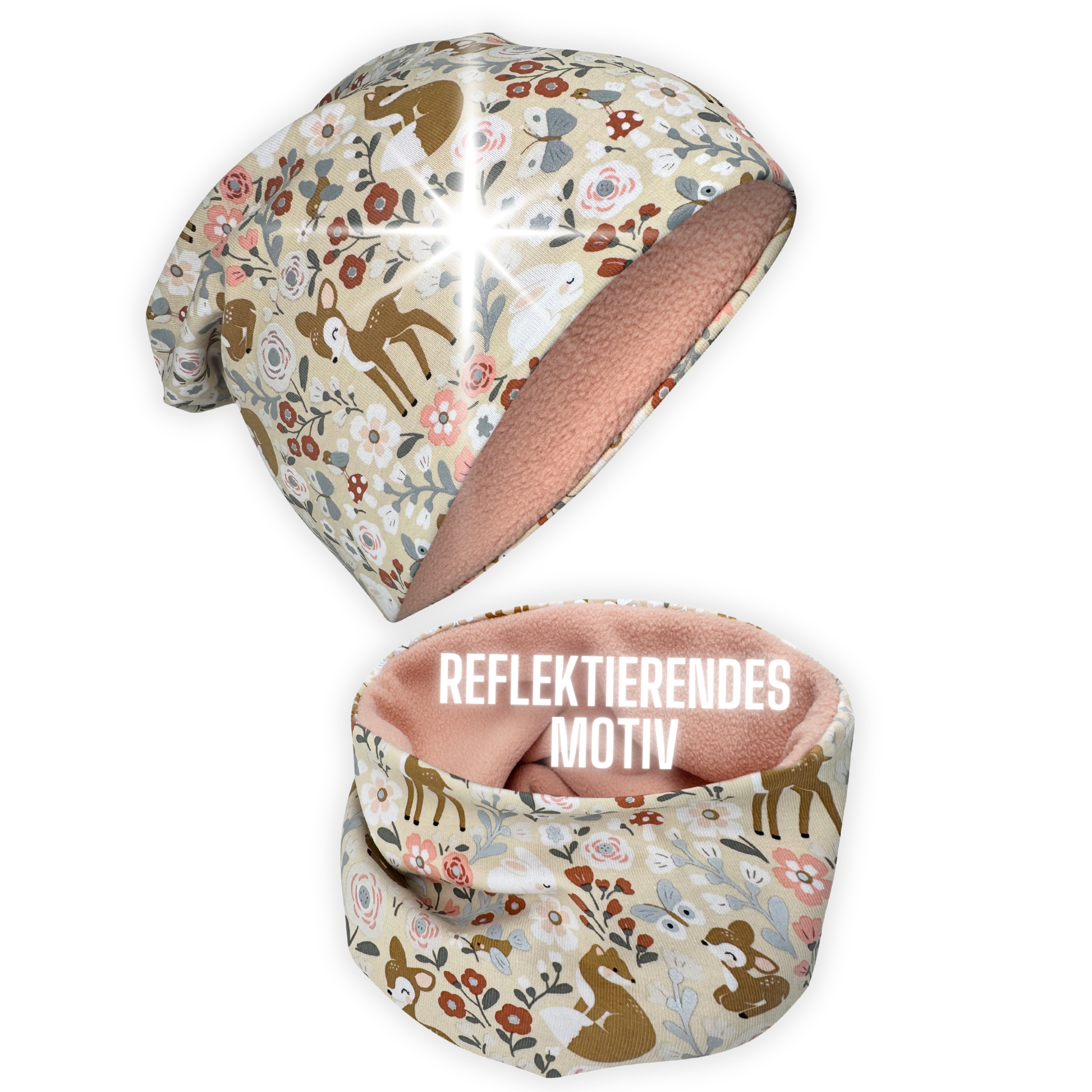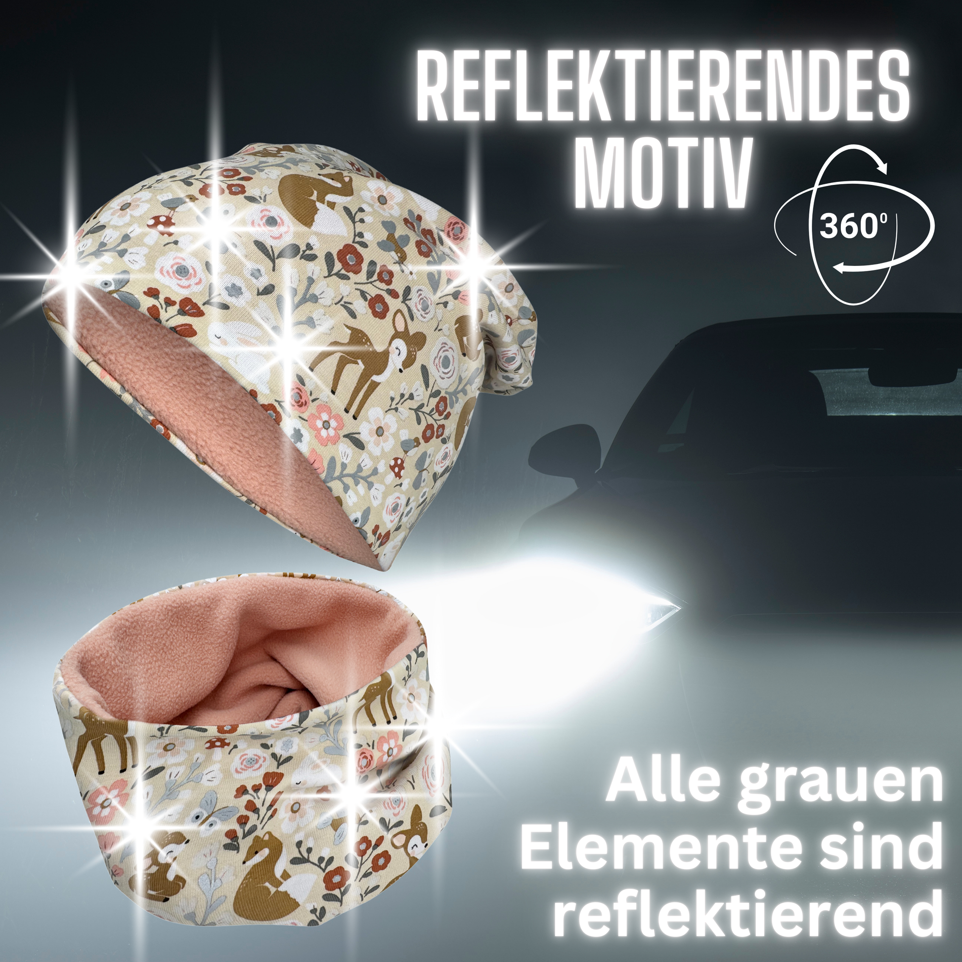 Kinder Reflektor Mütze & Loop Waldtiere