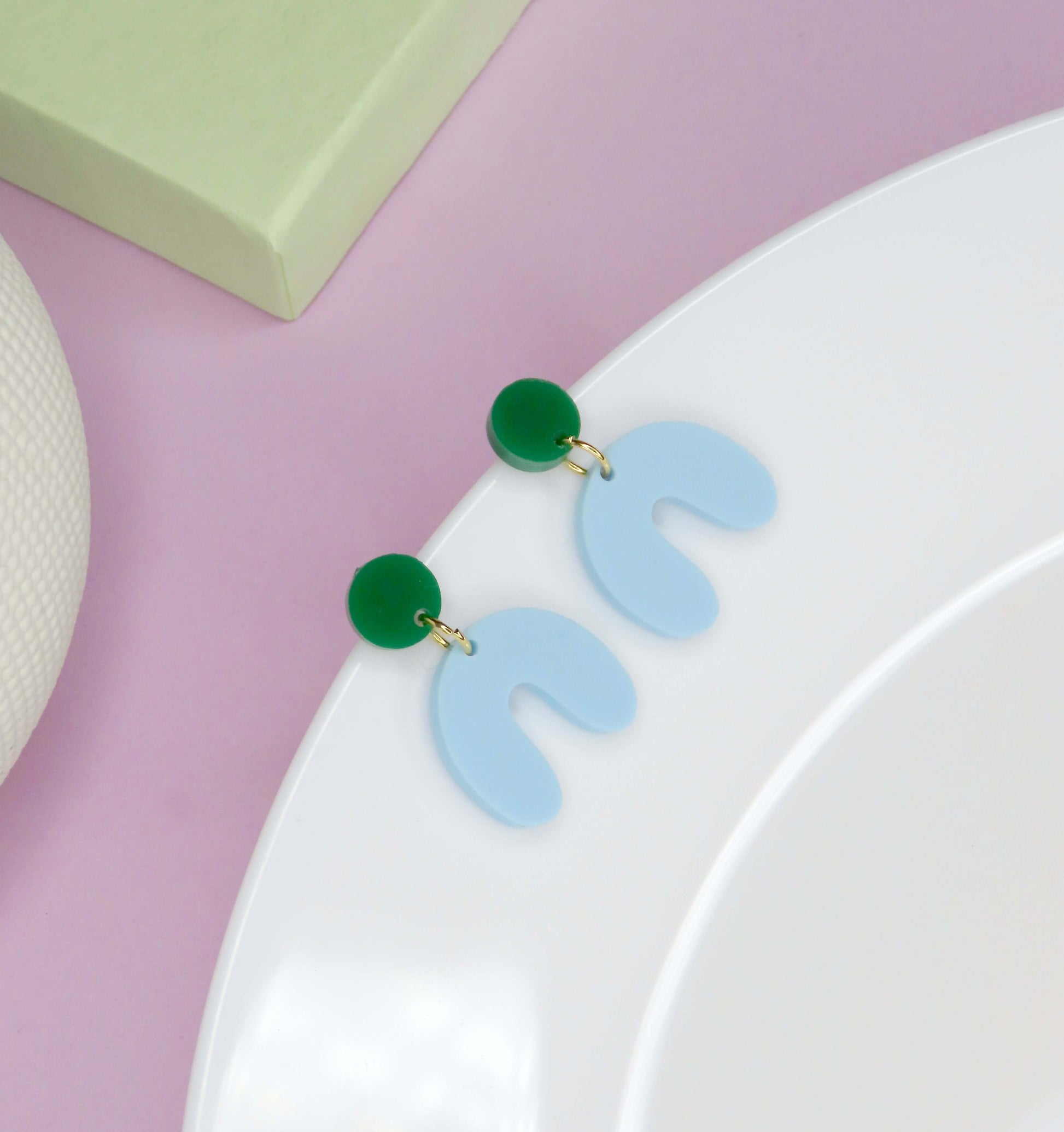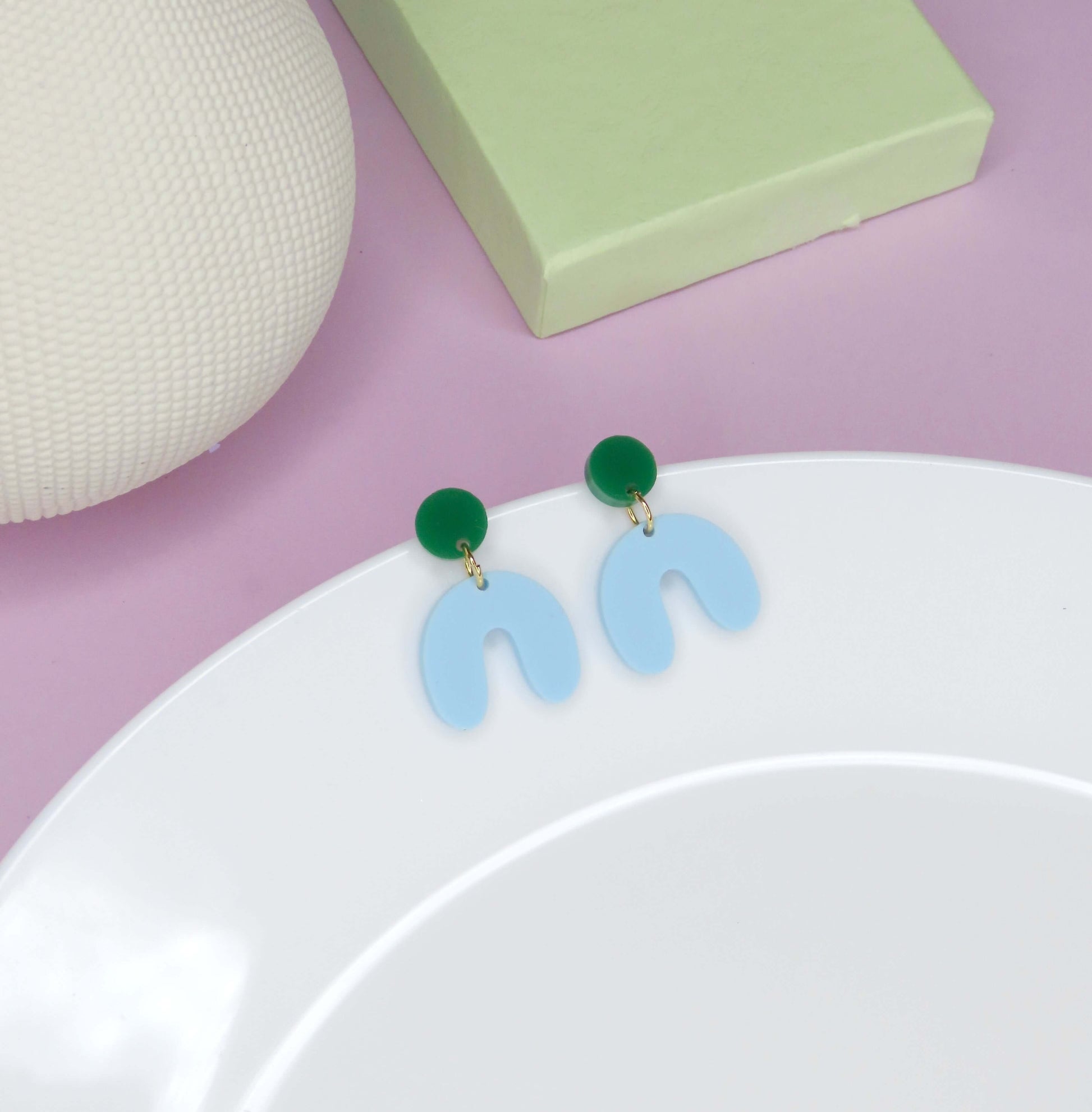 Kleine Arch Bogen Ohrringe in froschgrün hellblau