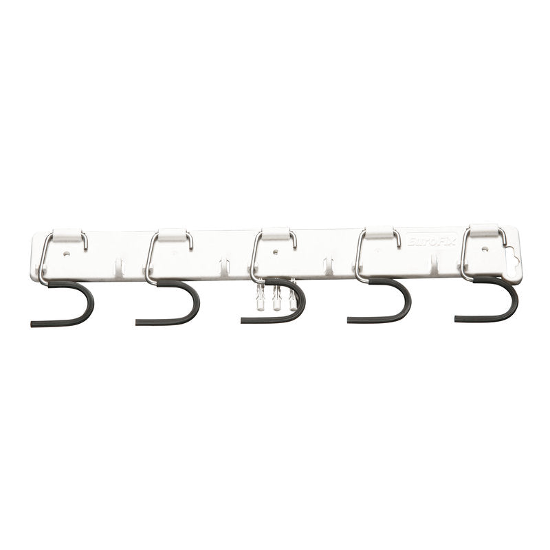 Kunststoff-Geräteleiste mit 5 verzinkten beweglichen Haken 440x50mm