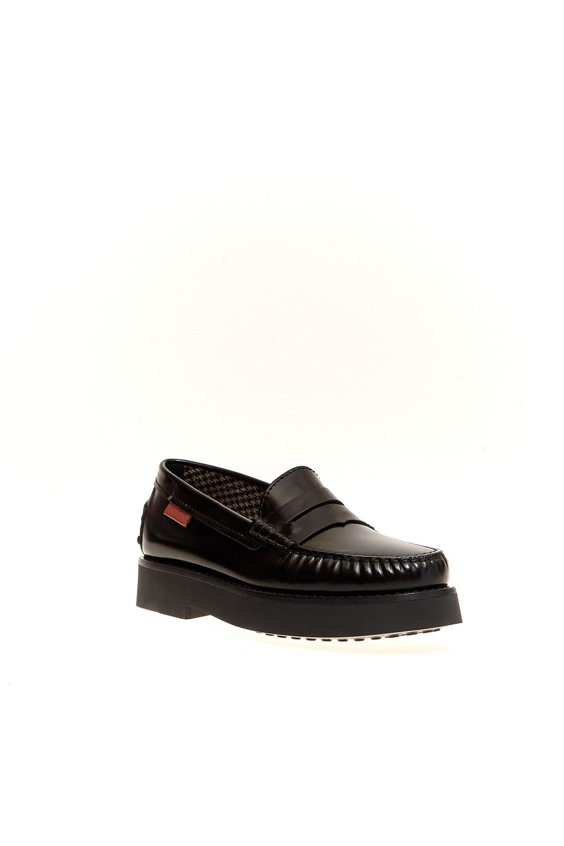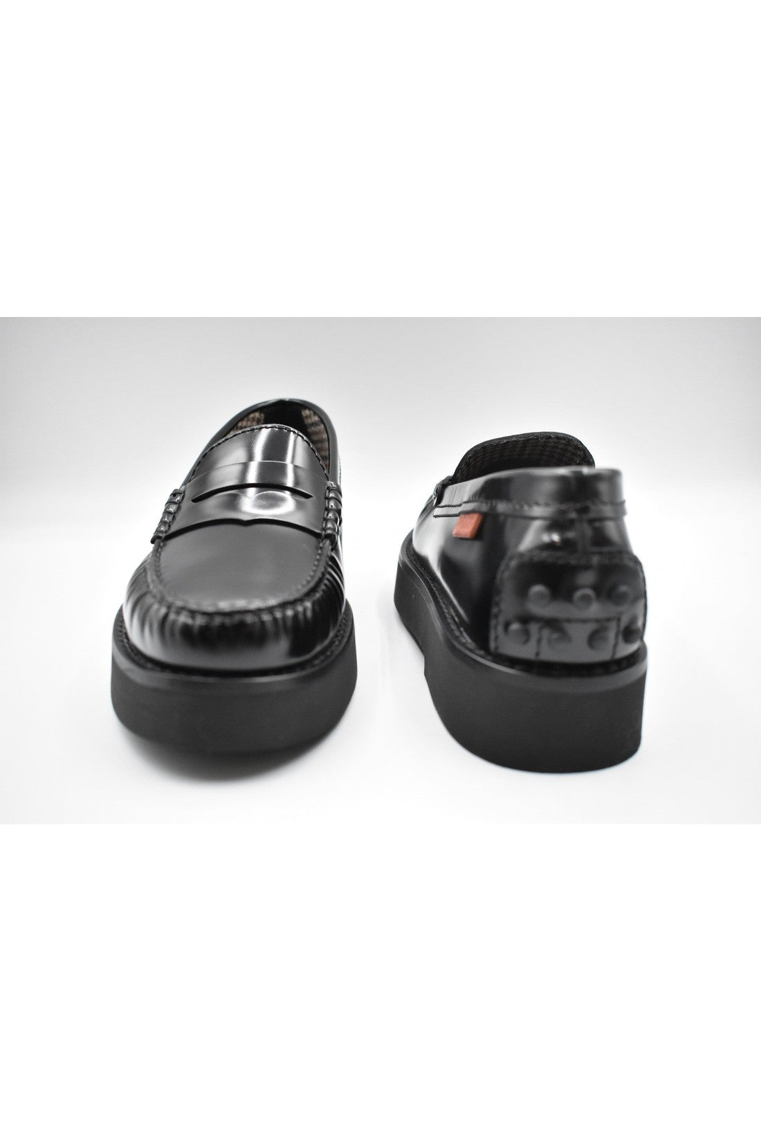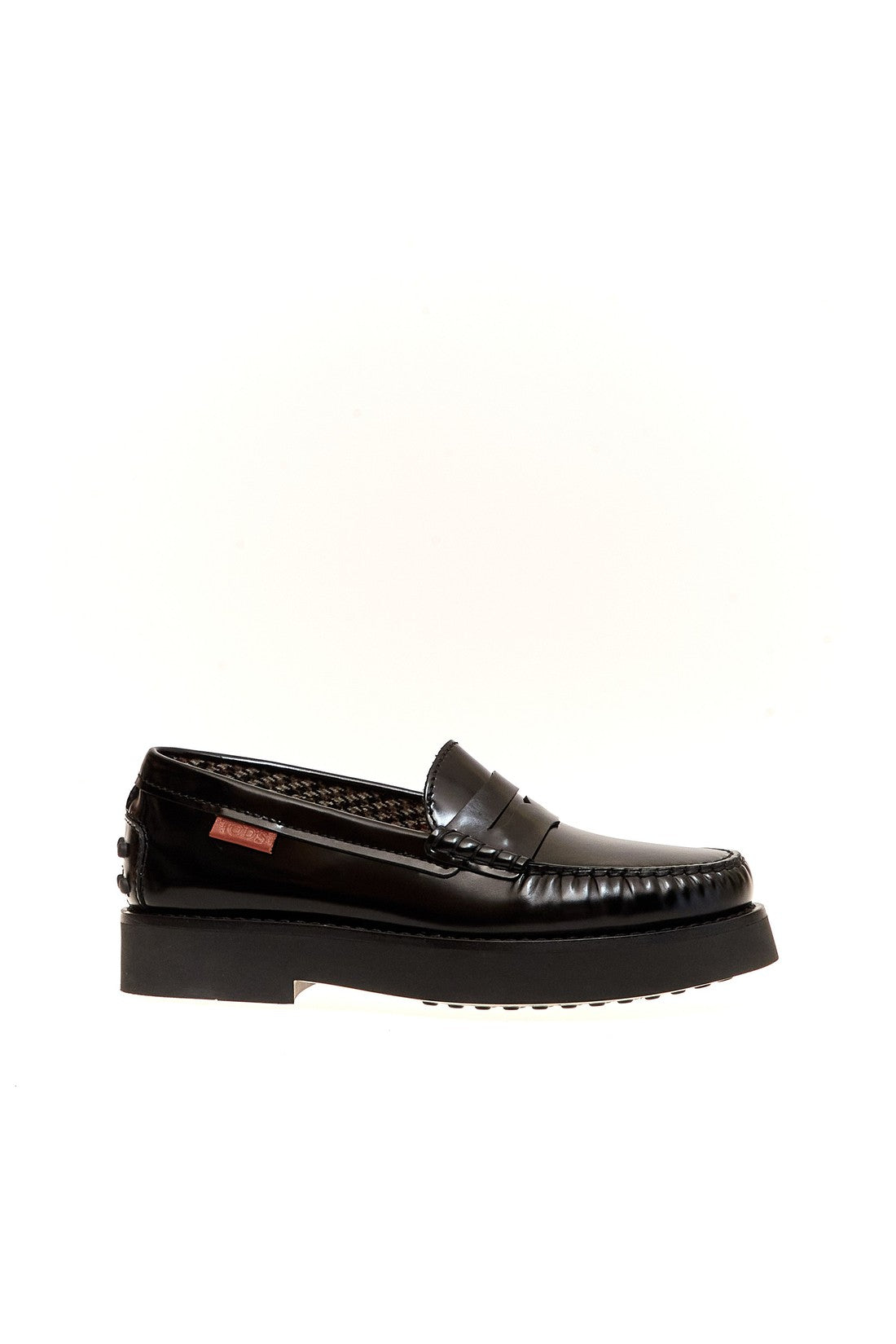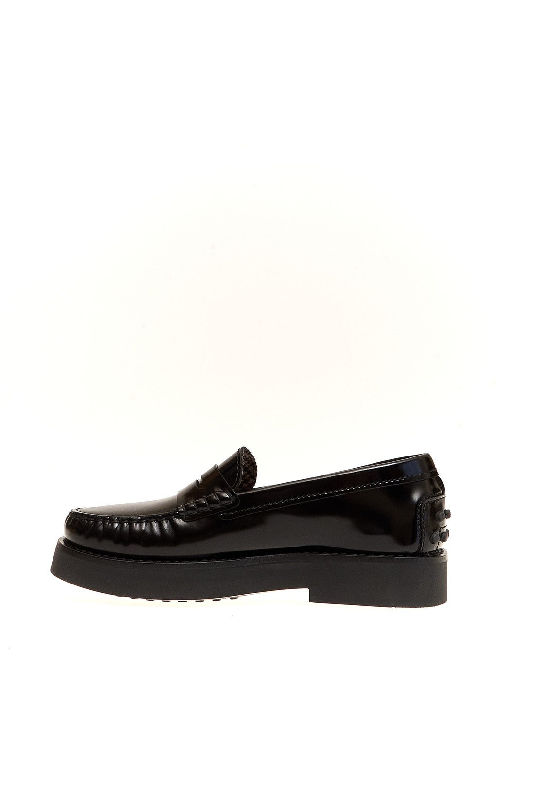Step out in style with these sleek black leather loafers from TOD'S. Made in Italy, these loafers feature a rubber sole for extra comfort, a brushed finish for a luxurious look, and a wool blend lining for warmth. The perfect combination of style and comfort for any occasion.