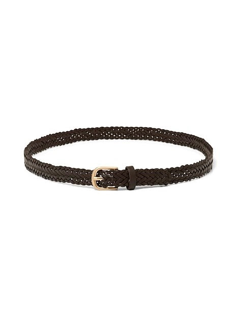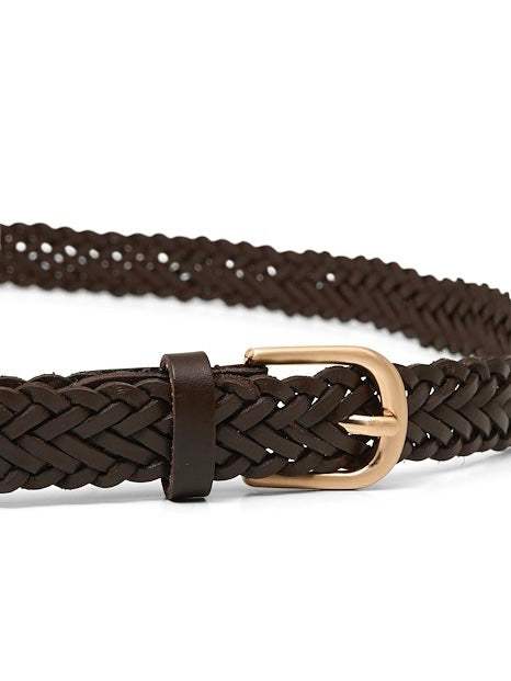 Basic Flechtgürtel aus Leder, individuell in der Länge verschließbar. Hufeisenförmige Gürtelschnalle aus Messing. Schlichte Blusenshirts oder Strickjacken erhalten durch ihn den zeitgemäßen Look. In 2 Größen erhältlich