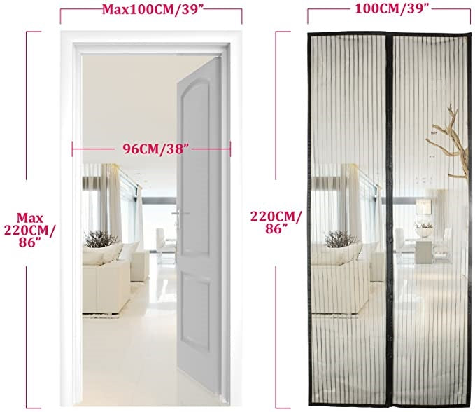 Magnetisches Fliegengitter für Tür Insektenschutznetz Polyester Schwarz