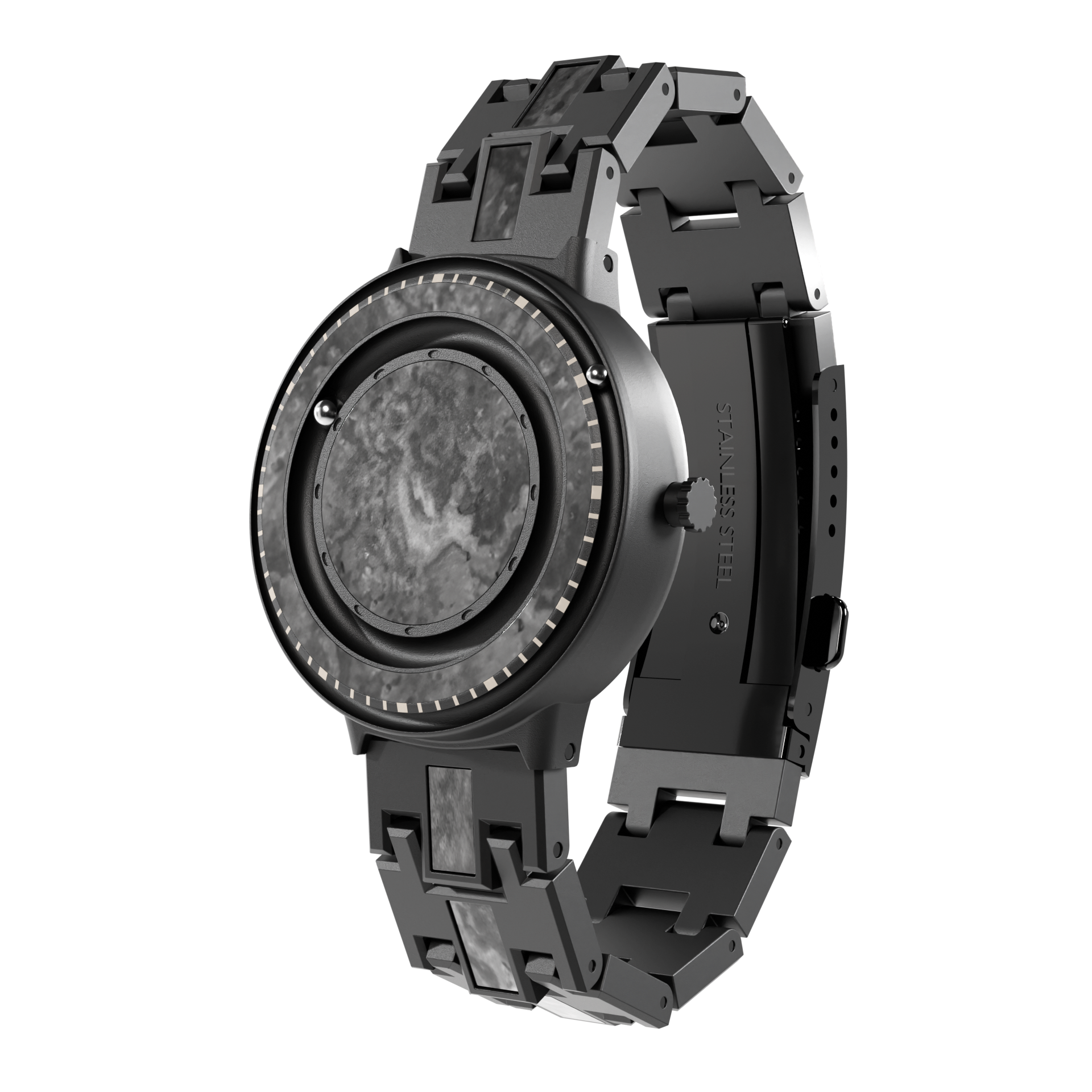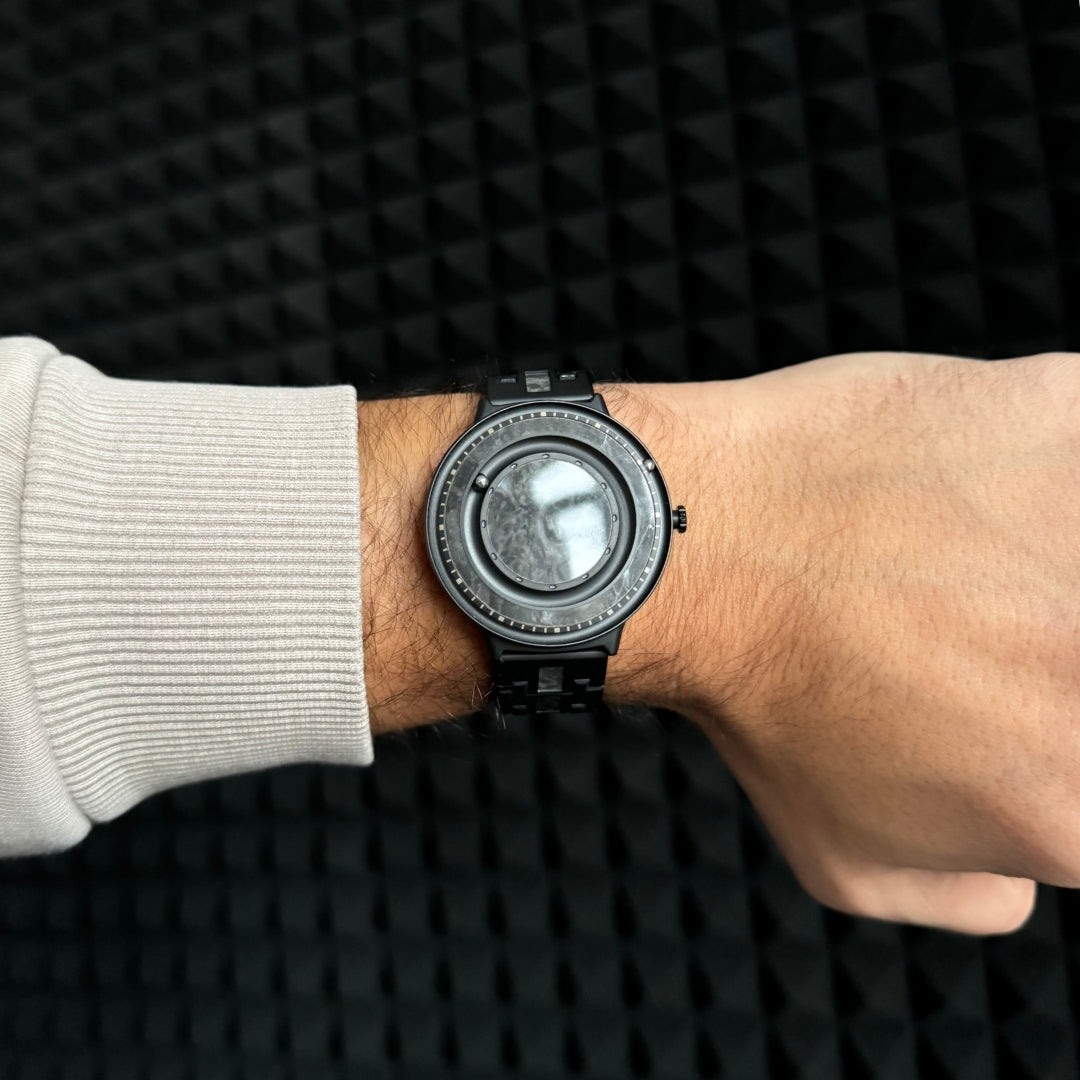 Die Marble Black Automatik von Magneto Watch ist eine exklusive Herrenuhr mit einem Zifferblatt aus echtem Marmor. Jede Uhr ist ein Unikat, da die natürliche Maserung des Marmors einzigartig ist. Das Gehäuse aus hochwertigem Alloy mit Glas-Rückkappe gibt den Blick auf das Seiko NH38A Automatikwerk frei. Das Edelstahlarmband mit edlen Marmoreinlagen ergänzt den minimalistischen und eleganten Stil. Gehäusedurchmesser: 42 mm, Gehäusehöhe: 13 mm. Perfekt für Uhrenliebhaber, die Individualität und zeitloses Design schätzen.