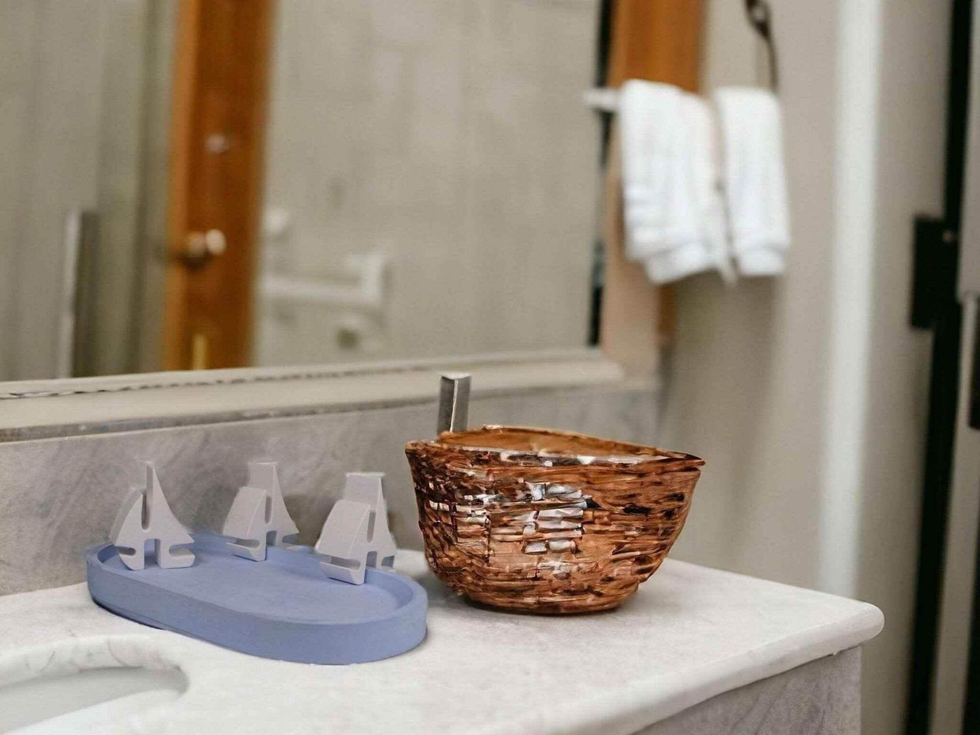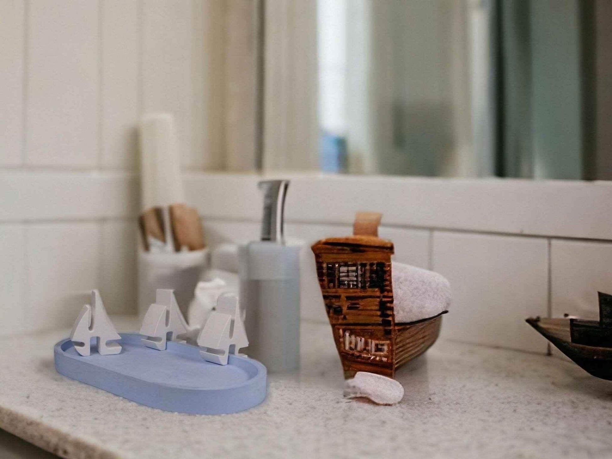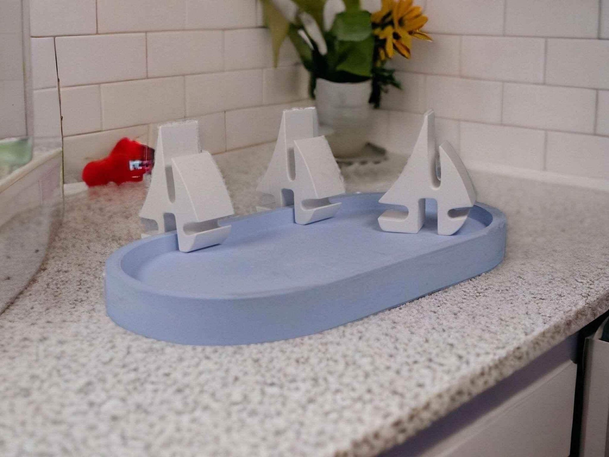 Bringe mit diesem handgefertigten Dekoteller aus hochwertiger Keramik frische Meeresbrise und stilvolles Küstenflair in dein Zuhause. Das charmante Arrangement aus drei Segelbooten auf einem ovalen Teller (170 × 90 mm) ist ein echtes Highlight für Sideboard, Esstisch oder Regal.
