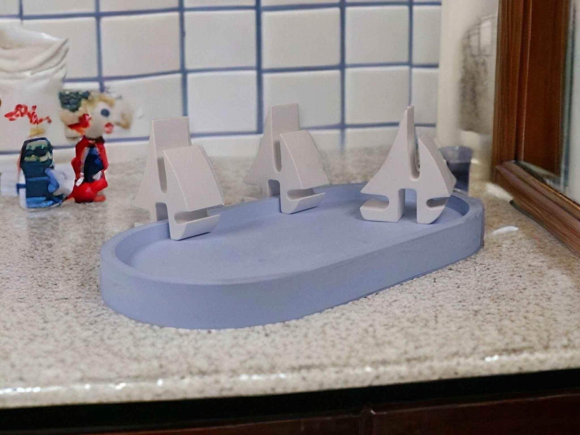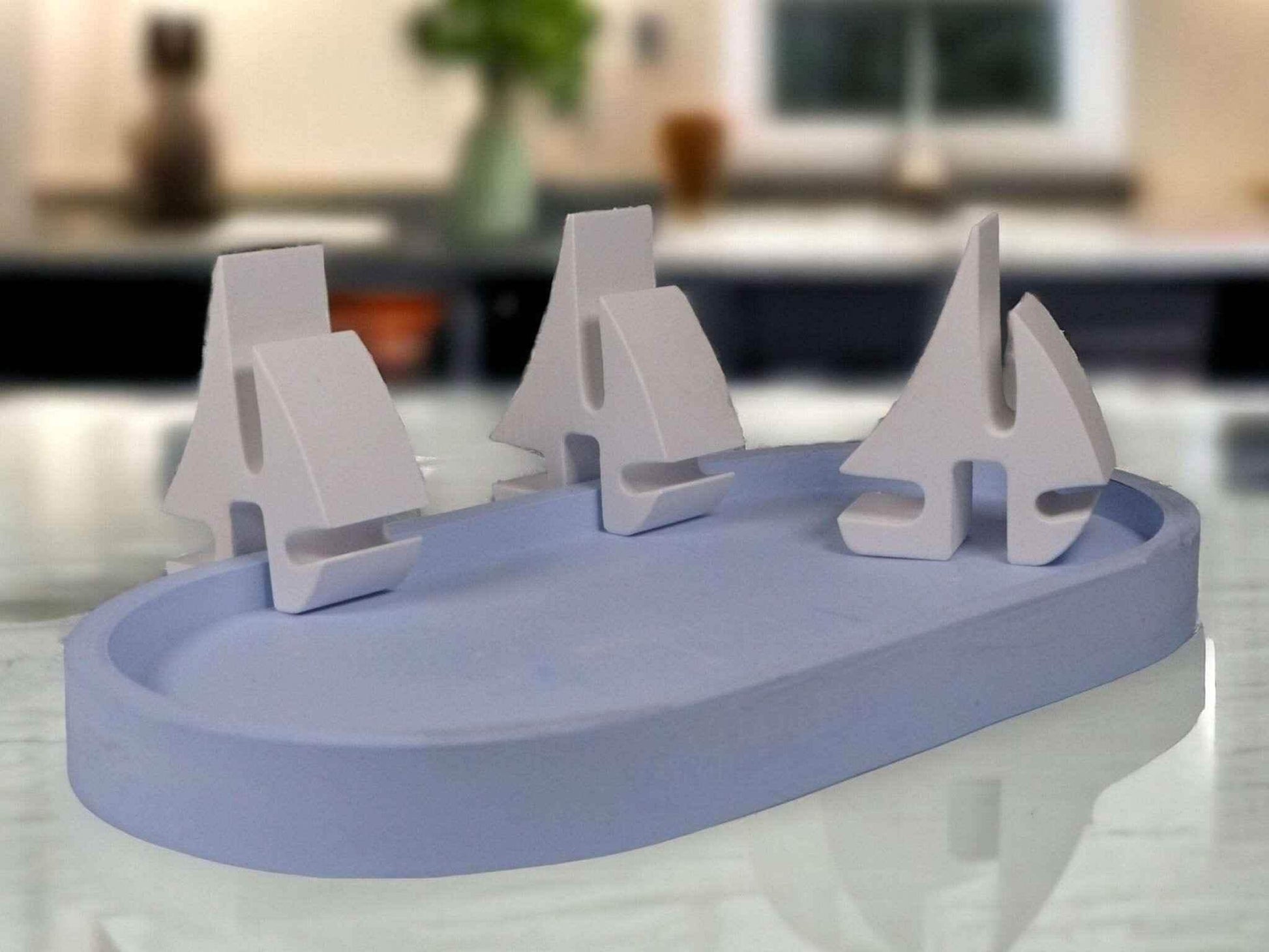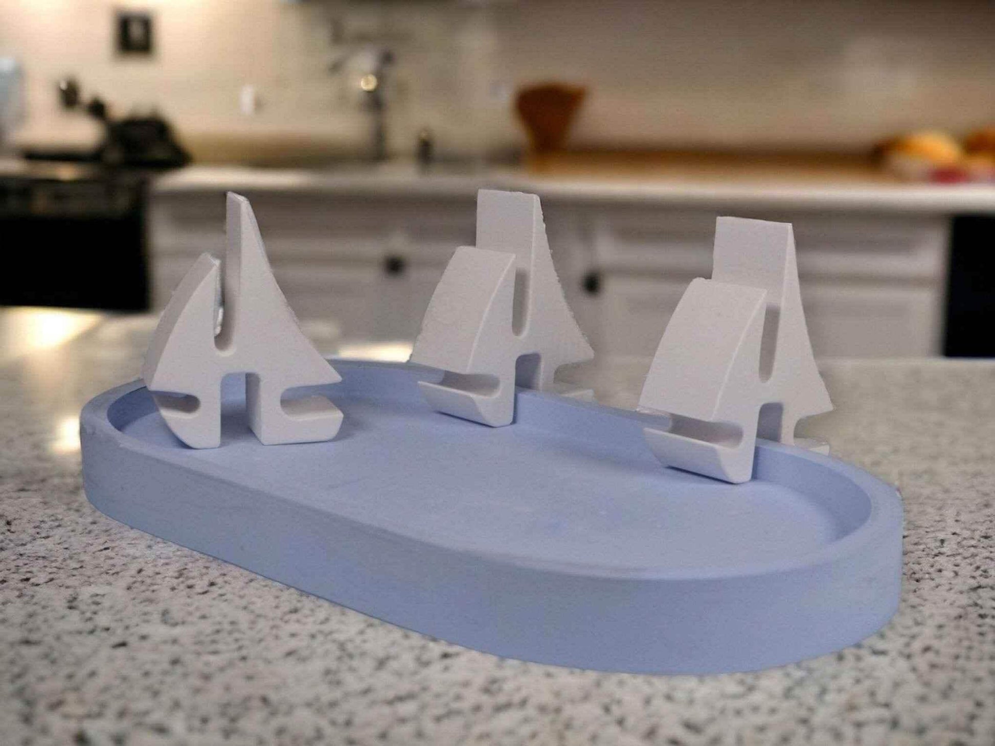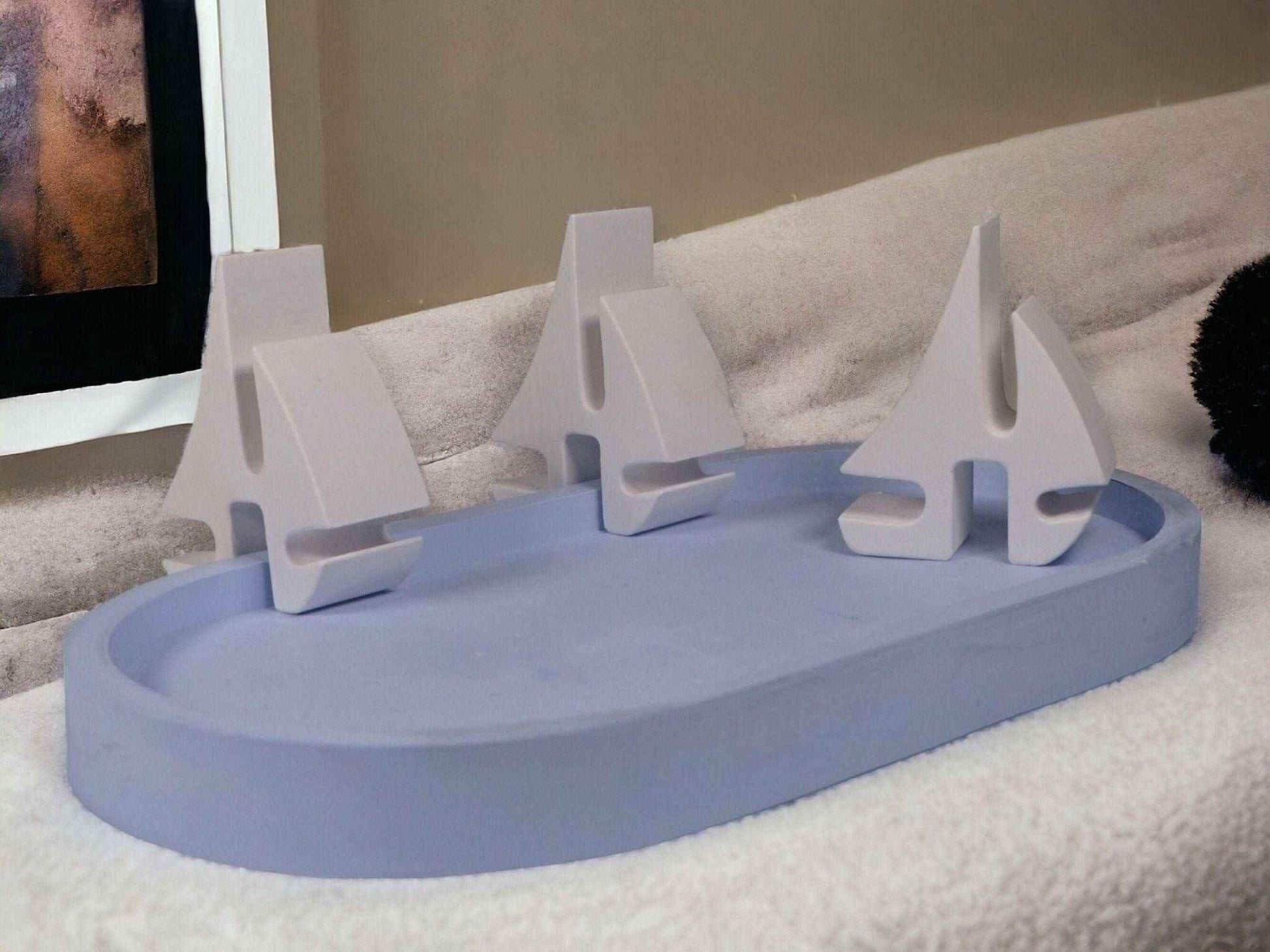 Maritimer Dekoteller mit Segelbooten – Handgefertigte Keramik-Deko in Wunschfarben