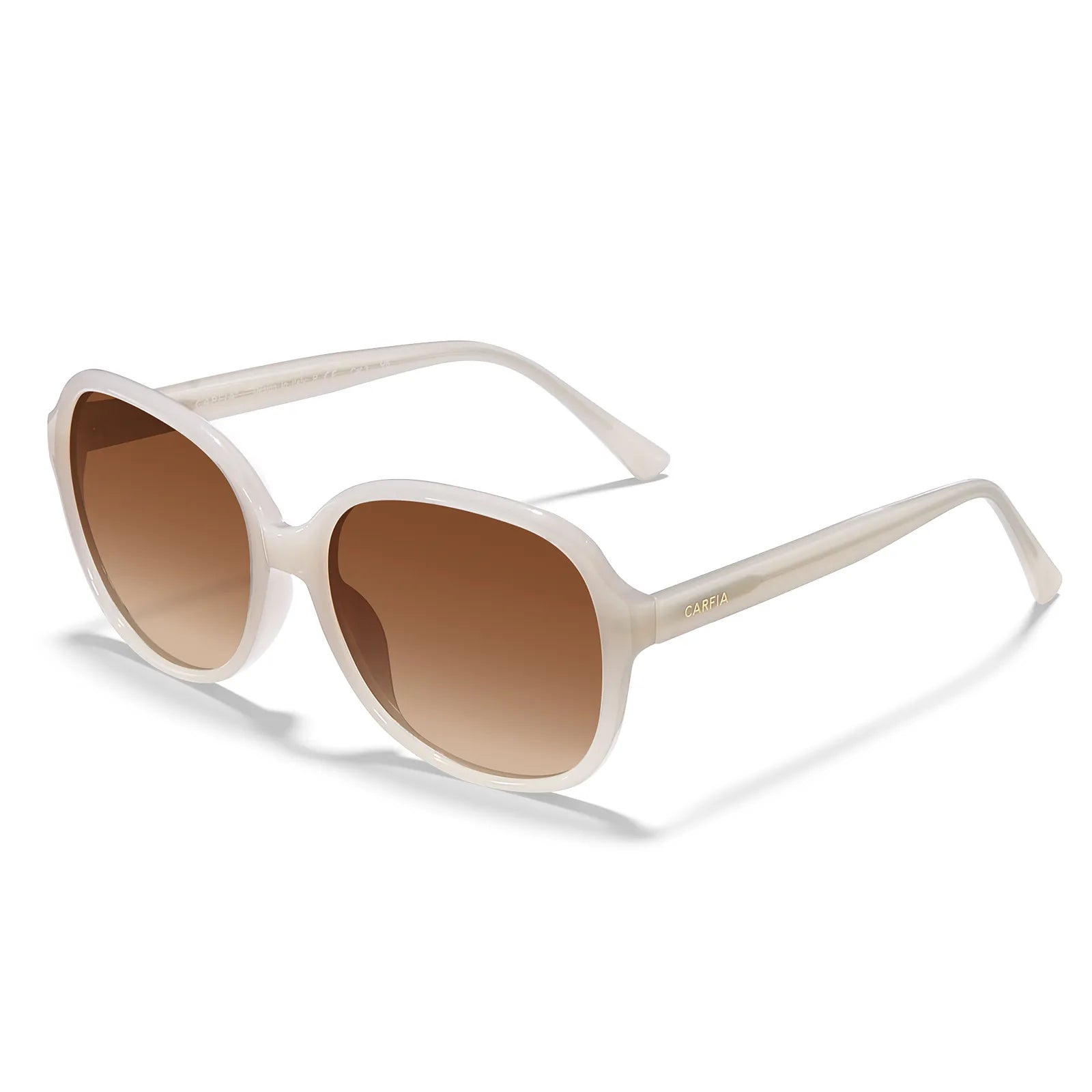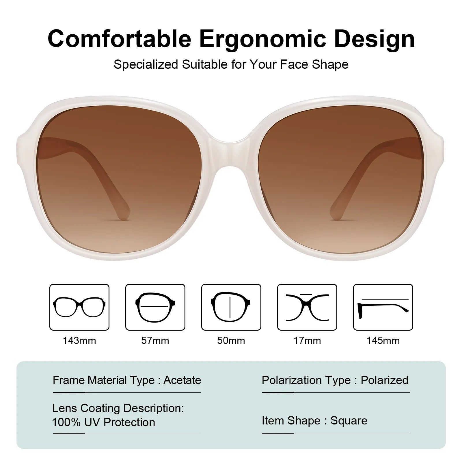 Ergonomic Construction Sun Glasses for Women - These polarized women's sunglasses offer enhanced lens coverage (with a lens width of 57mm) and a specialized lens curvature that provides perfect protection against sidelight. They are ideal for activities like golf, driving, and handling anything else that the sun presents!Polarized UVA, UVB Rays Protection - The lenses are highly effective at polarization, so your eyes won't be irritated by the brightness of the sunshine. Instead, it's a very soothing experience, allowing you to enjoy your daily life without having to squint.Real Expensive Acetate Eyewear - Carfia's hand-crafted cellulose acetate frames come with embedded patterns and feature a rich color finish, making them just as excellent as the world's most renowned brands. Because we believe that everyone should have the opportunity to wear high-quality eyeglasses.Hardware & Details - The three-barrel hinge adds durability to the frame's structure. The exclusive colors result in a unique pattern for each frame. These sunglasses are not only aesthetically pleasing for fashion but also great for protecting your eyes on sunny days, even if you have puffy eyes.Package Bonus✚✚✚ - ✔ Women's Sunglasses, ✔ Polarization Testing Card, ✔ Soft Lenses Wipe, ✔ 365 Days Free Replacement Card, ✔ Nice Leather Eyeglass Case, ✔ Hard Protection Box. It's 100% risk-free to try. In case of any issues, just contact the seller without hesitation, and they'll solve the problem to your satisfaction.