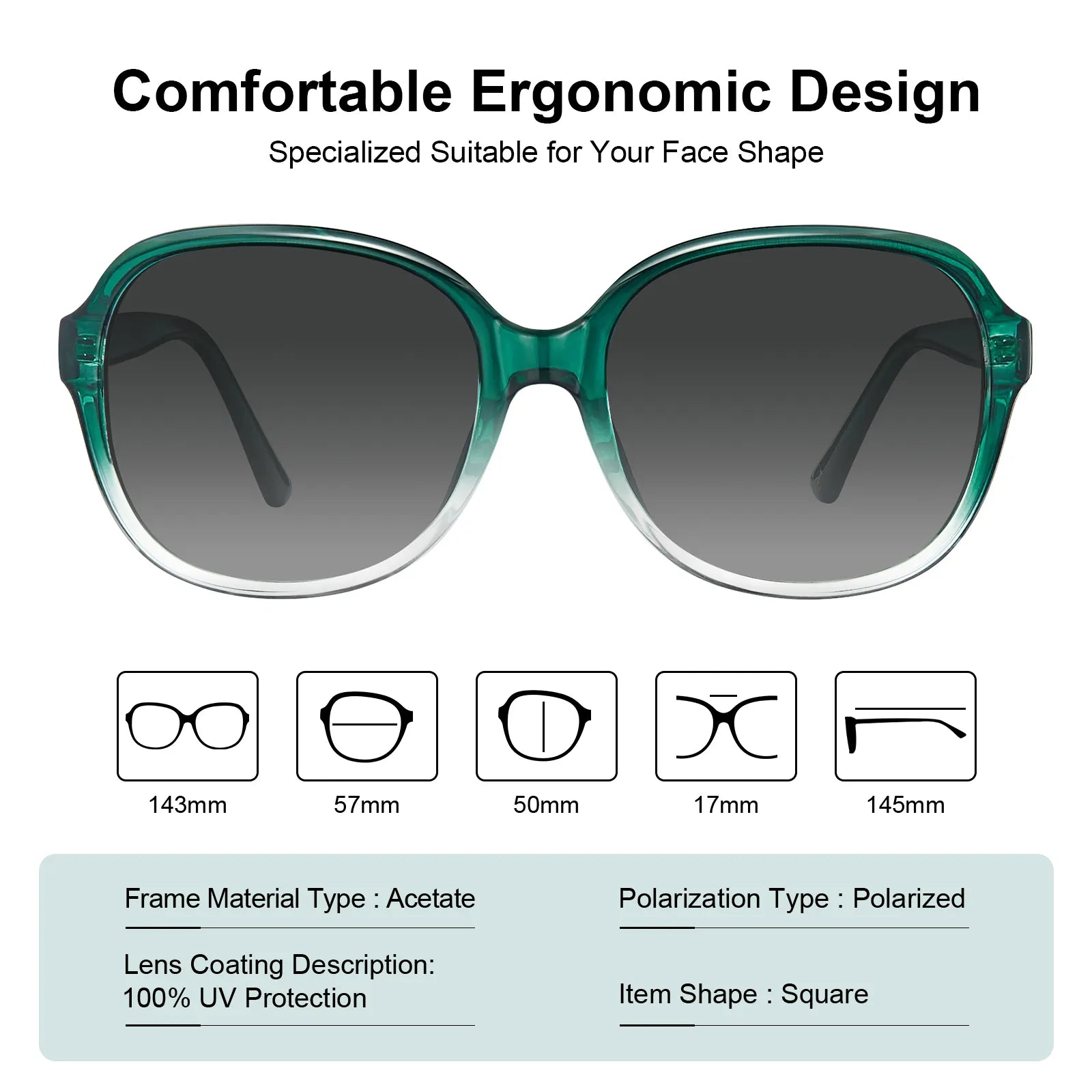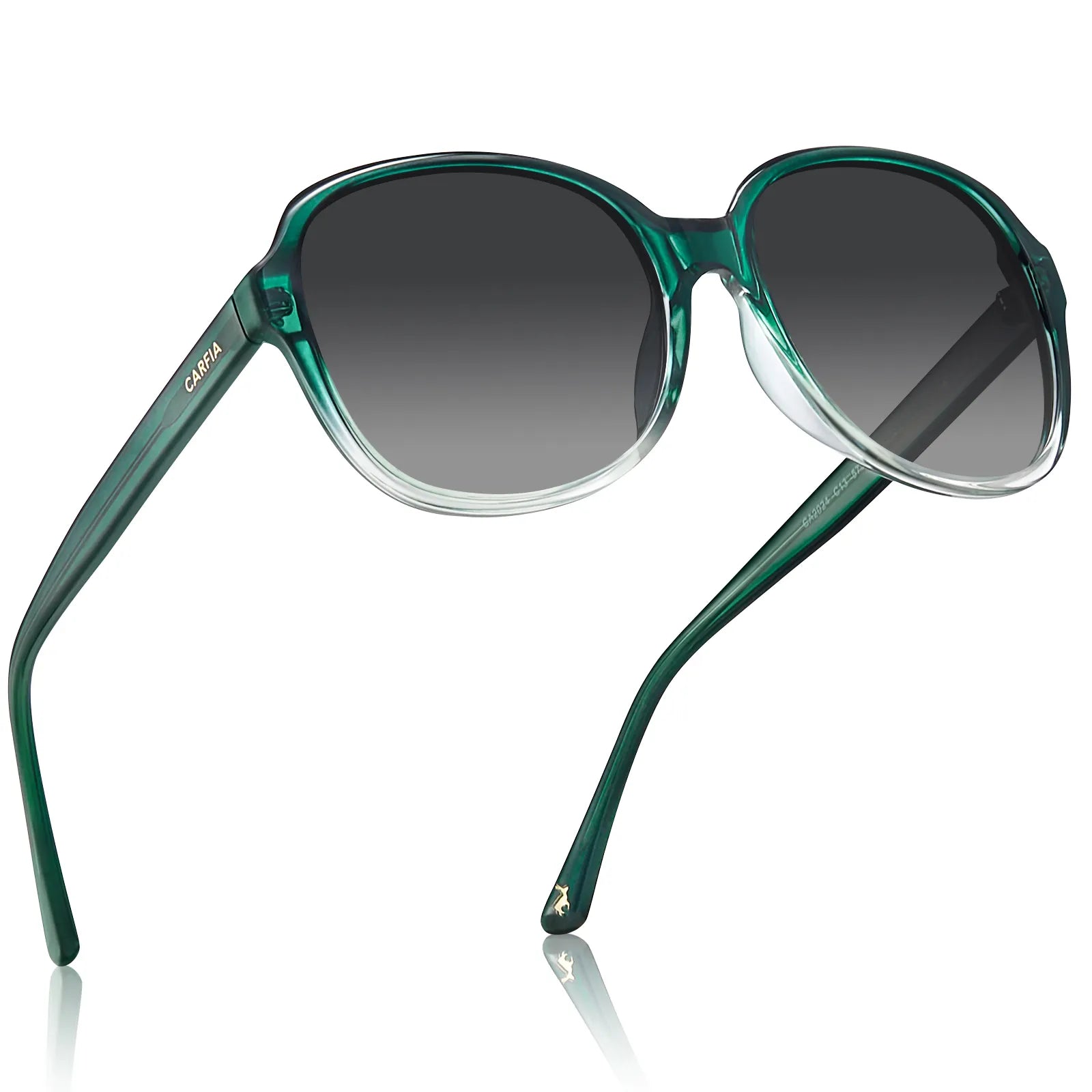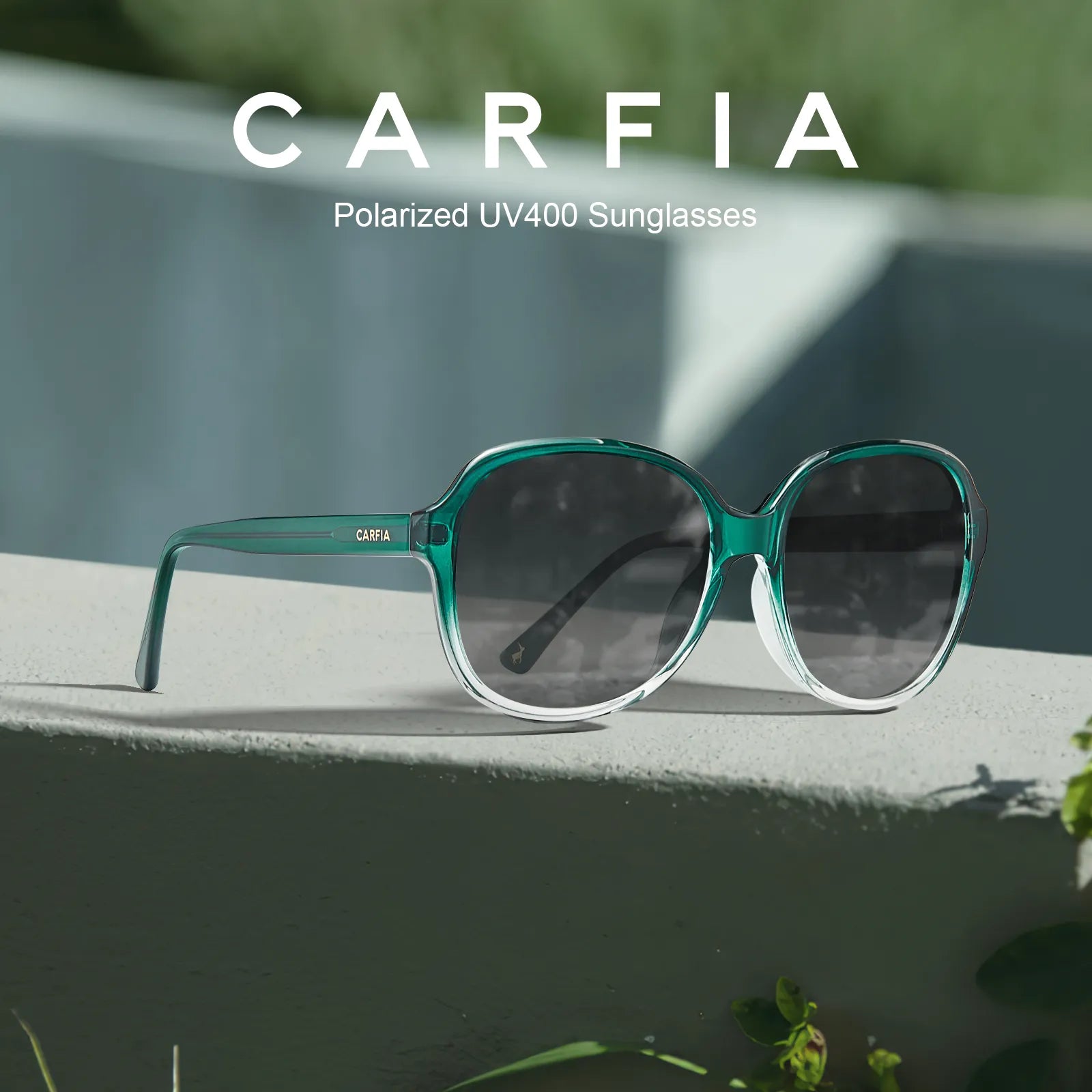 Ergonomic Construction Sun Glasses for Women - These polarized women's sunglasses offer enhanced lens coverage (with a lens width of 57mm) and a specialized lens curvature that provides perfect protection against sidelight. They are ideal for activities like golf, driving, and handling anything else that the sun presents!Polarized UVA, UVB Rays Protection - The lenses are highly effective at polarization, so your eyes won't be irritated by the brightness of the sunshine. Instead, it's a very soothing experience, allowing you to enjoy your daily life without having to squint.Real Expensive Acetate Eyewear - Carfia's hand-crafted cellulose acetate frames come with embedded patterns and feature a rich color finish, making them just as excellent as the world's most renowned brands. Because we believe that everyone should have the opportunity to wear high-quality eyeglasses.Hardware & Details - The three-barrel hinge adds durability to the frame's structure. The exclusive colors result in a unique pattern for each frame. These sunglasses are not only aesthetically pleasing for fashion but also great for protecting your eyes on sunny days, even if you have puffy eyes.Package Bonus✚✚✚ - ✔ Women's Sunglasses, ✔ Polarization Testing Card, ✔ Soft Lenses Wipe, ✔ 365 Days Free Replacement Card, ✔ Nice Leather Eyeglass Case, ✔ Hard Protection Box. It's 100% risk-free to try. In case of any issues, just contact the seller without hesitation, and they'll solve the problem to your satisfaction.