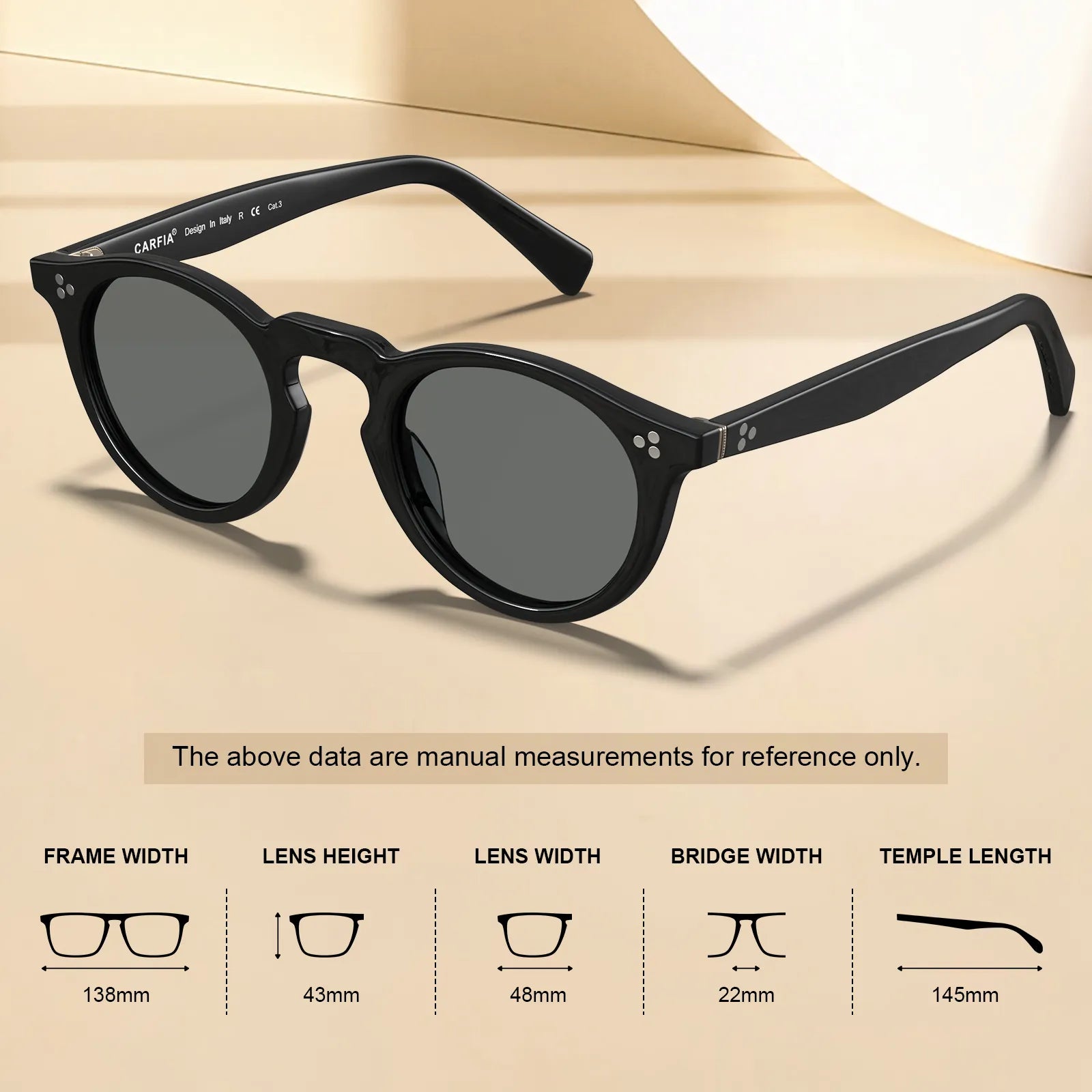 - Italian Hand-crafted Acetate Frame - In contrast to other inferior plastic frames, CARFIA's Italian acetate frames are hypoallergenic, boast richer colors, and are corrosion-resistant. This makes them comfortable to wear for extended periods without the worry of frame delamination. Plastic sunglasses break easily and are non-biodegradable. So, why not opt for acetate polarized sunglasses for men, an environmentally friendly material?