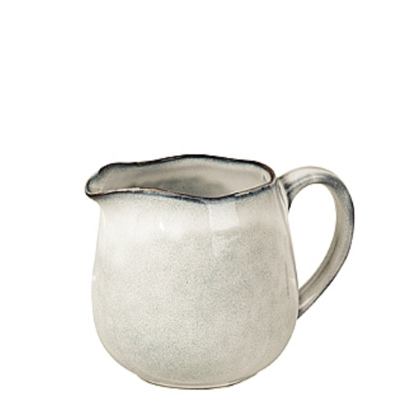 Milchkännchen der Serie Nordic Sand aus Steingut. Jedes Teil fällt in Farbe und Struktur etwas unterschiedlich aus. Unebenheiten unter der Lasur sind gewollt und Bestandteil des nordischen Designs. Weitere Teile der Serie werden ebenfalls angeboten. Für den Geschirrspüler und die Mikrowelle geeignet.