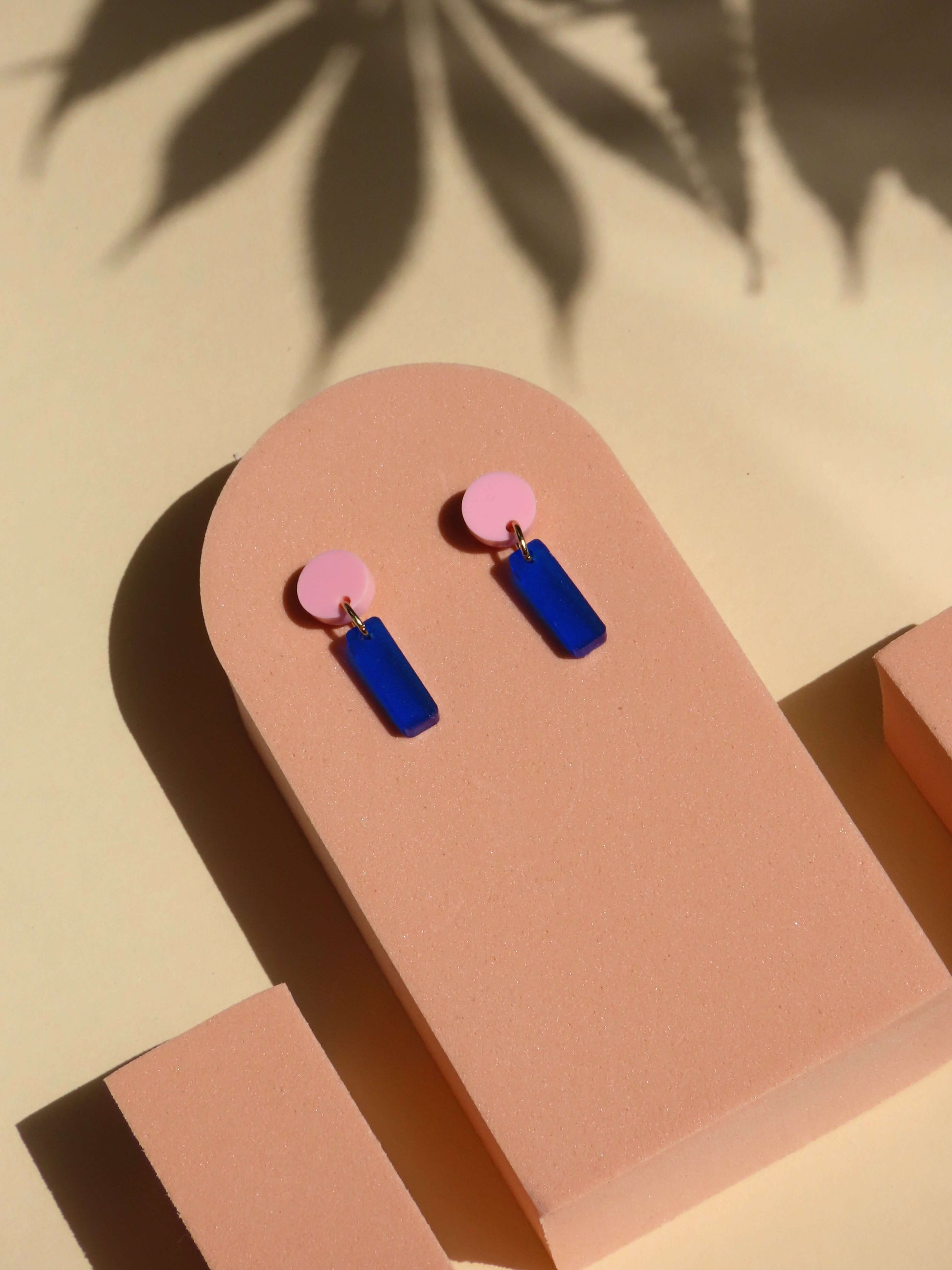 Zwei klare Formen, zwei starke Farben – unsere Mini Sticks Ohrringe kombinieren zartes Rosa mit tiefem Tintenblau. Die geometrische Kombination aus rundem Stecker und rechteckigem Anhänger sorgt für einen modernen Look mit echtem Statement-Charakter.