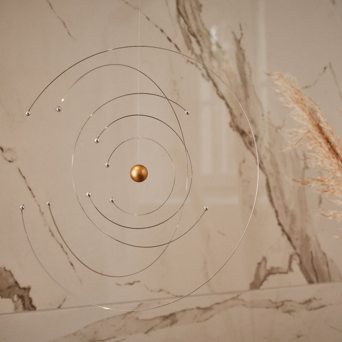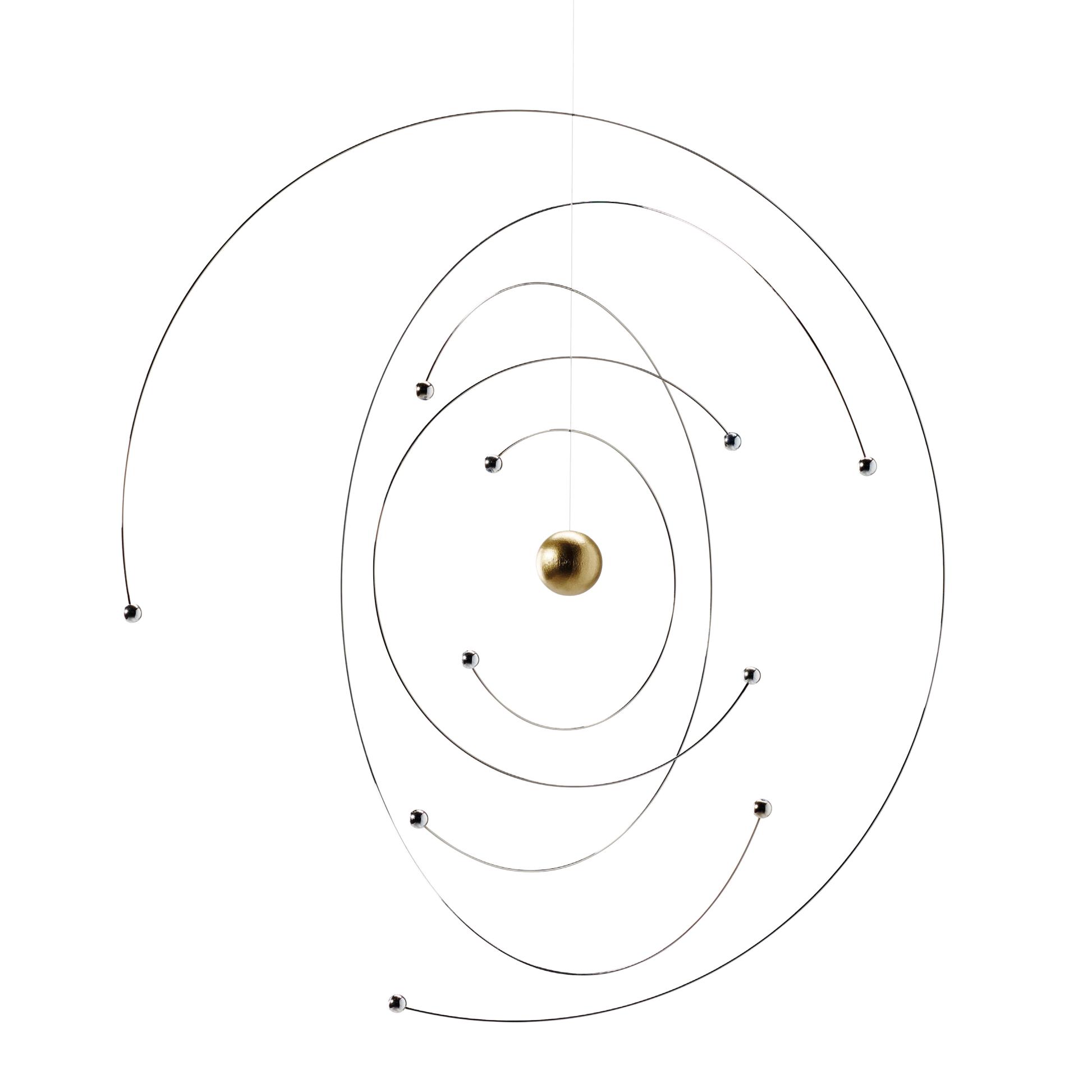 Dieses dekorative, handgefertigte Mobile wurde vom Niels Bohr Institut Kopenhagen gemeinsam mit Ole Flenstedt zum 100-jährigen Jubiläum des Atommodells designt. Es passt sich jedem Einrichtungsstil hervorragend an.