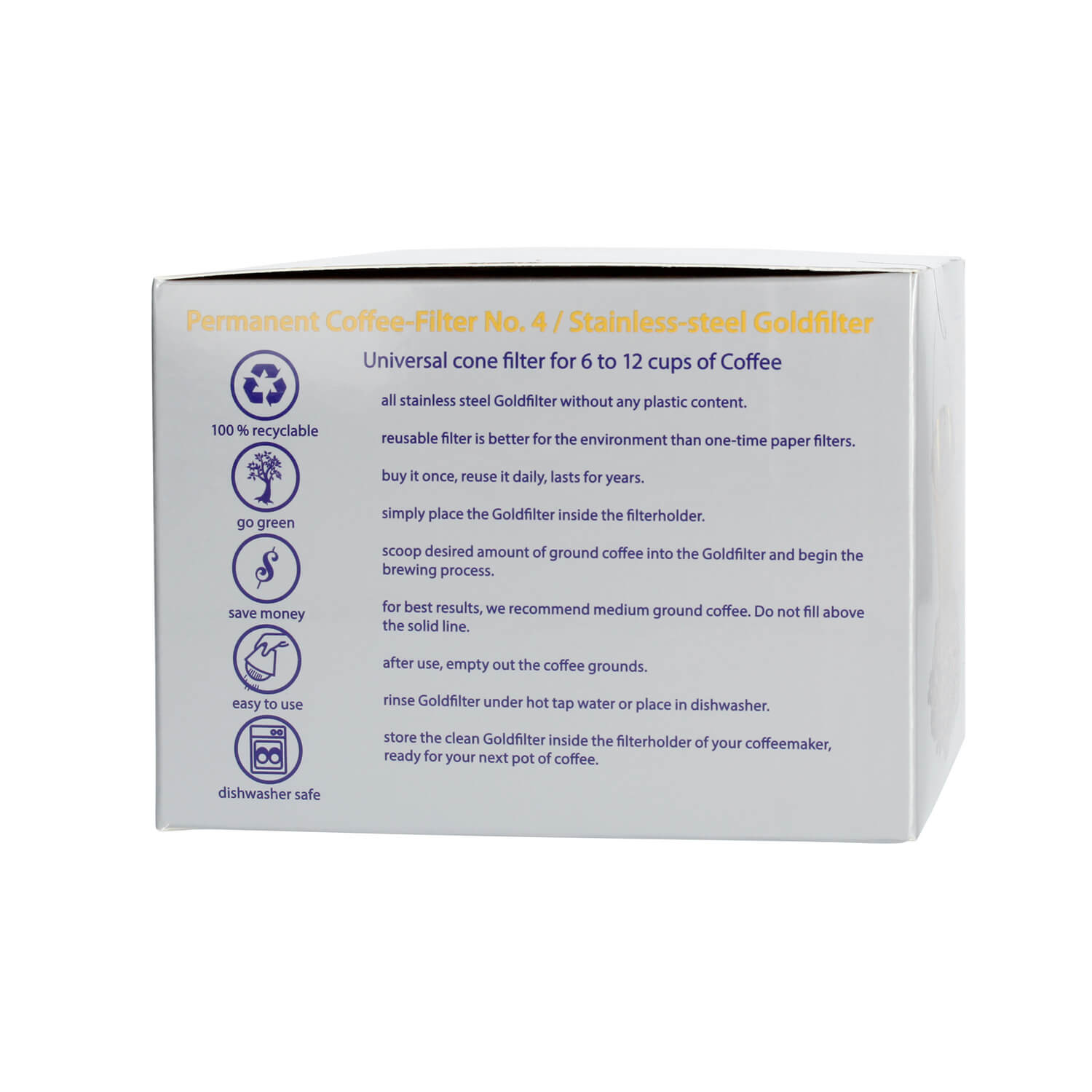 Elevate your daily brew with the Moccamaster Gold Filter 1x4, a premium reusable metal coffee filter designed for discerning coffee lovers.