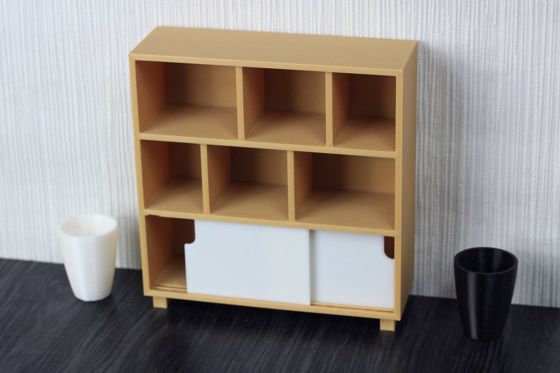 Modern Dollhouse Miniature Bookshelf with Sliding Doors - 1:12 Scale