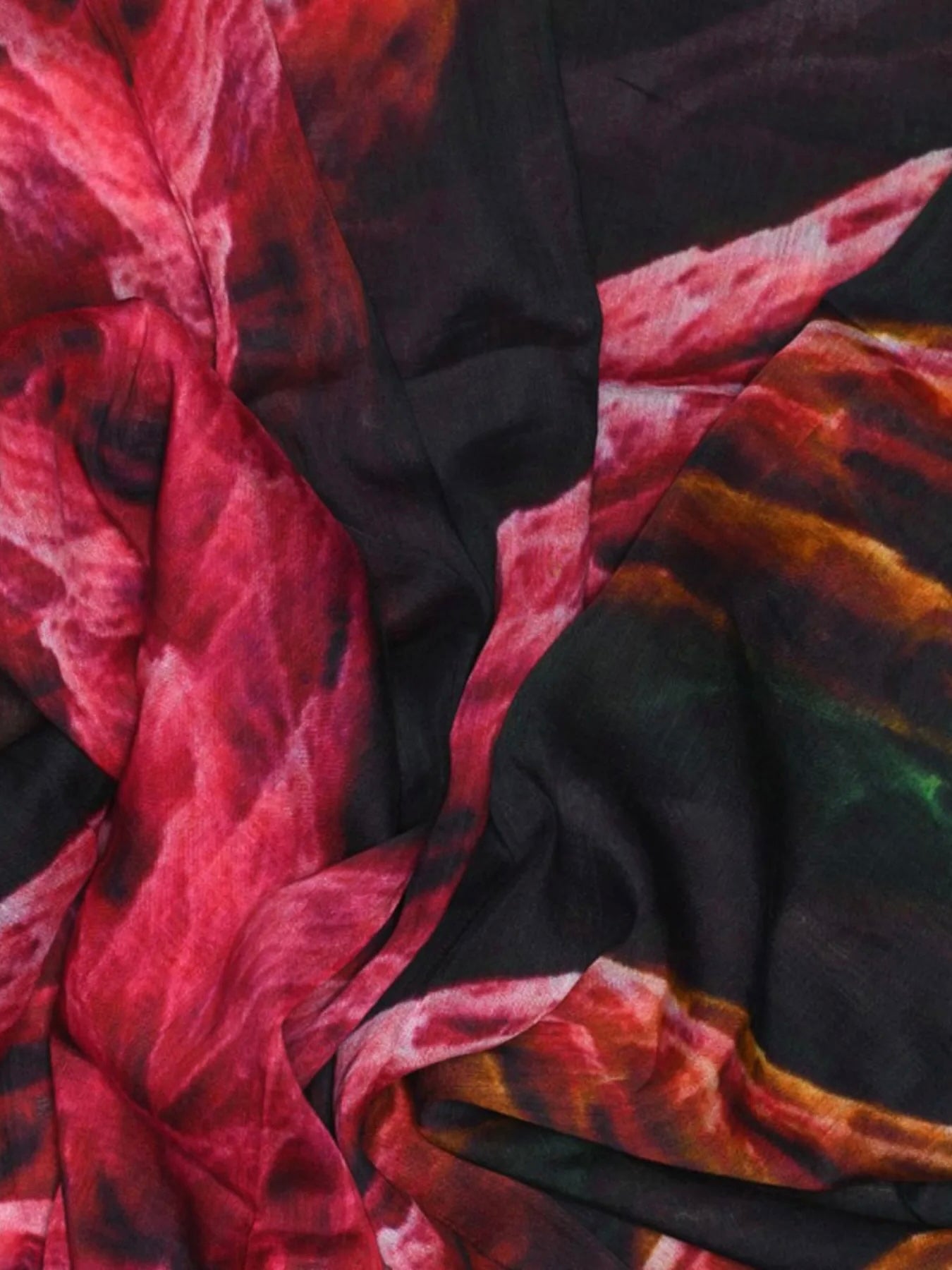 Hochwertiger Modeschal aus einer edlen Baumwolle/Seidemischung mit einem farblich abgestimmten Faunadruck. Die offenen Kanten sind Teil des Designs. Perfekt zu kombinieren.