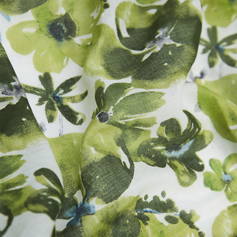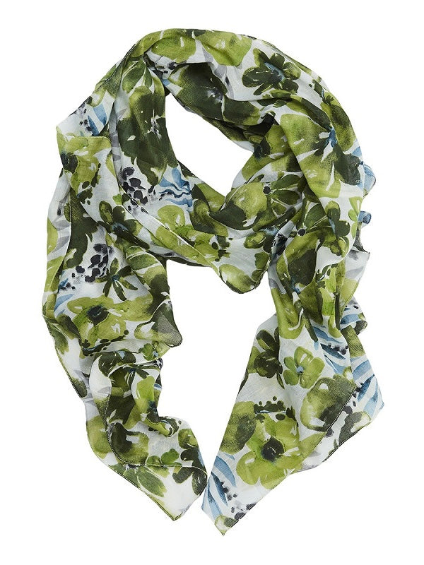 Edler Modeschal aus reiner Baumwolle mit einem dezenten Floralmuster. Er lässt sich ideal zu Kleidern und Shirts kombinieren.
