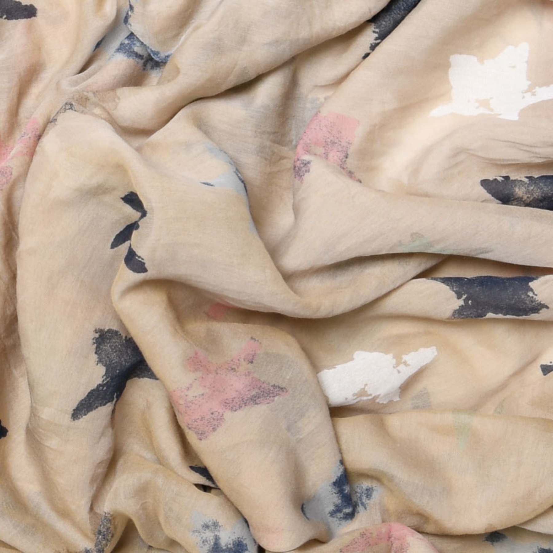 Luftig leichter Modeschal mit einem dezenten Sterne Dessin aus einer hochwertigen Seide/Baumwollmischung. Die schmale und kurze Form des Schals eignet sich ideal für leichte Oberteile.