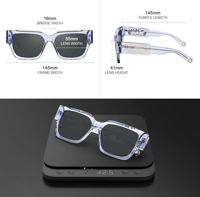 - UNIQUE SQUARE SUNGLASSES DESIGN: The sharp square shape with wide elaborate temples strike a balance between bold profiles and graphic lines, blending modern elegance and essential attitude. Making CARFIA women sunglasses become a useful product that transcends seasons.