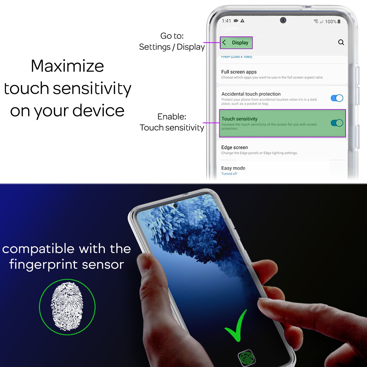 Die exakte Passform ermöglicht uneingeschränkten Zugriff auf alle Tasten, Anschlüsse und Kameras, während die hochsensible Frontfolie eine 100% reaktionsschnelle Touch-Bedienung gewährleistet. Selbstverständlich unterstützt 360Guard auch kabelloses Laden, sodass du dein Gerät jederzeit bequem aufladen kannst, ohne die Hülle zu entfernen.