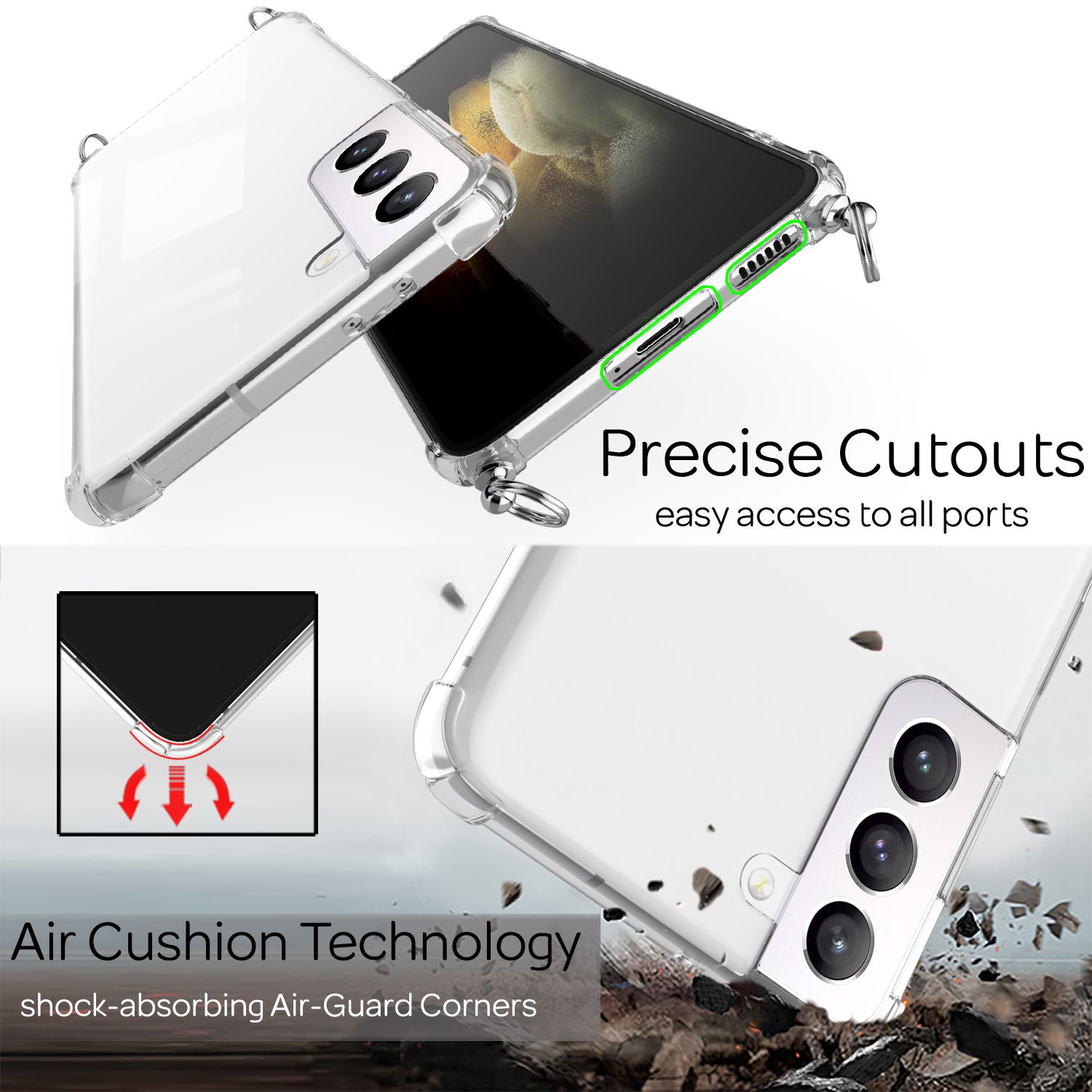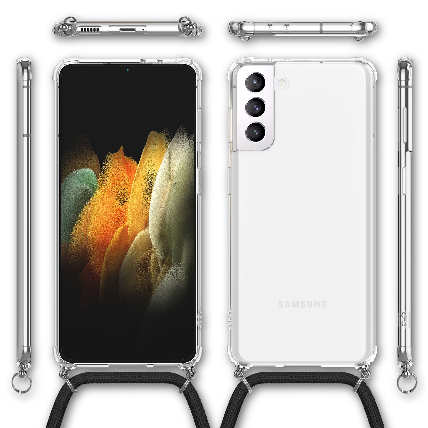 NALIA Klare Handy Hülle mit Kette für Samsung Galaxy S21, Band Case Kordel Cover