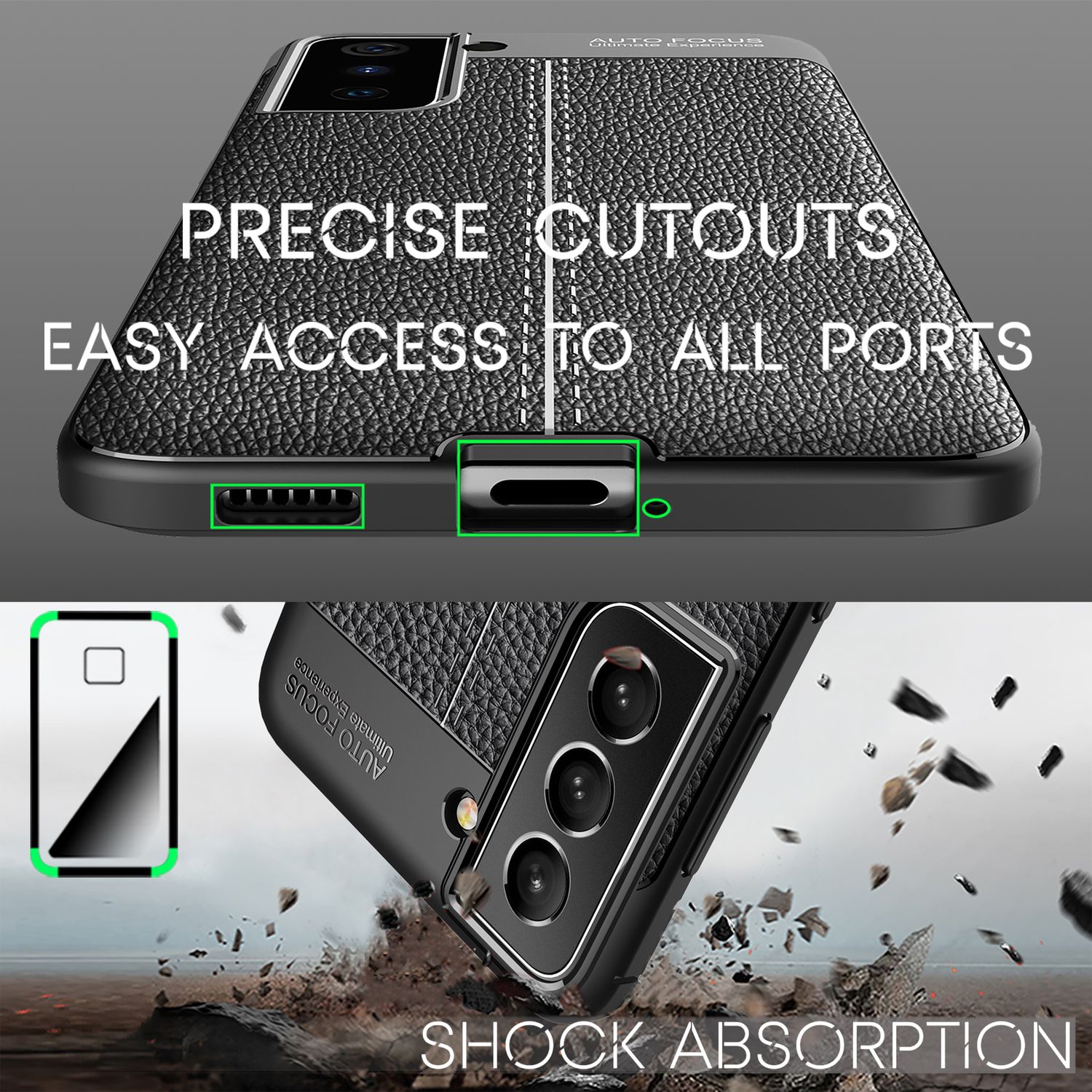 NALIA Leder Look Case für Samsung Galaxy S22 Plus, Schwarze Silikonhülle Anti-Fingerabdruck Rutschfest Kratzfest Stoßfest, Handyhülle Schutzhülle