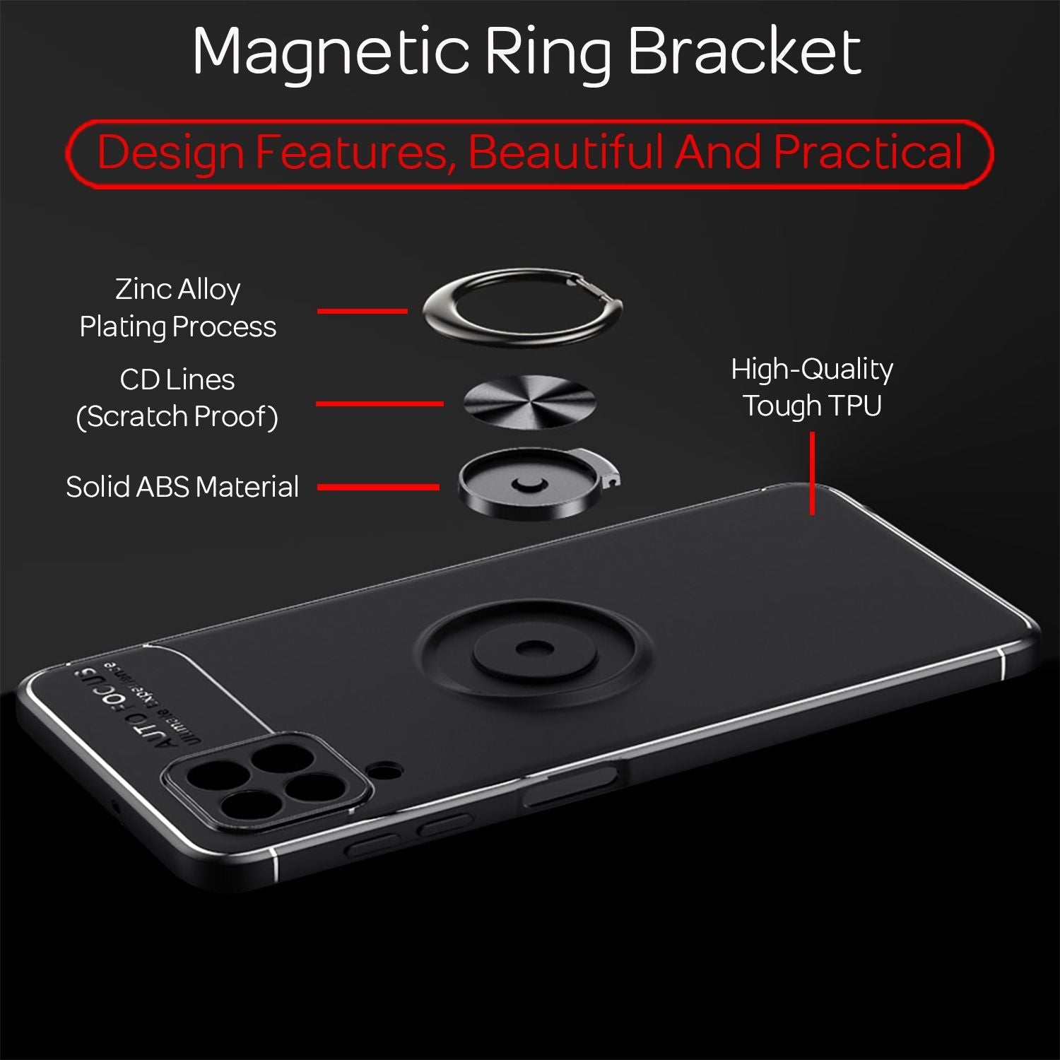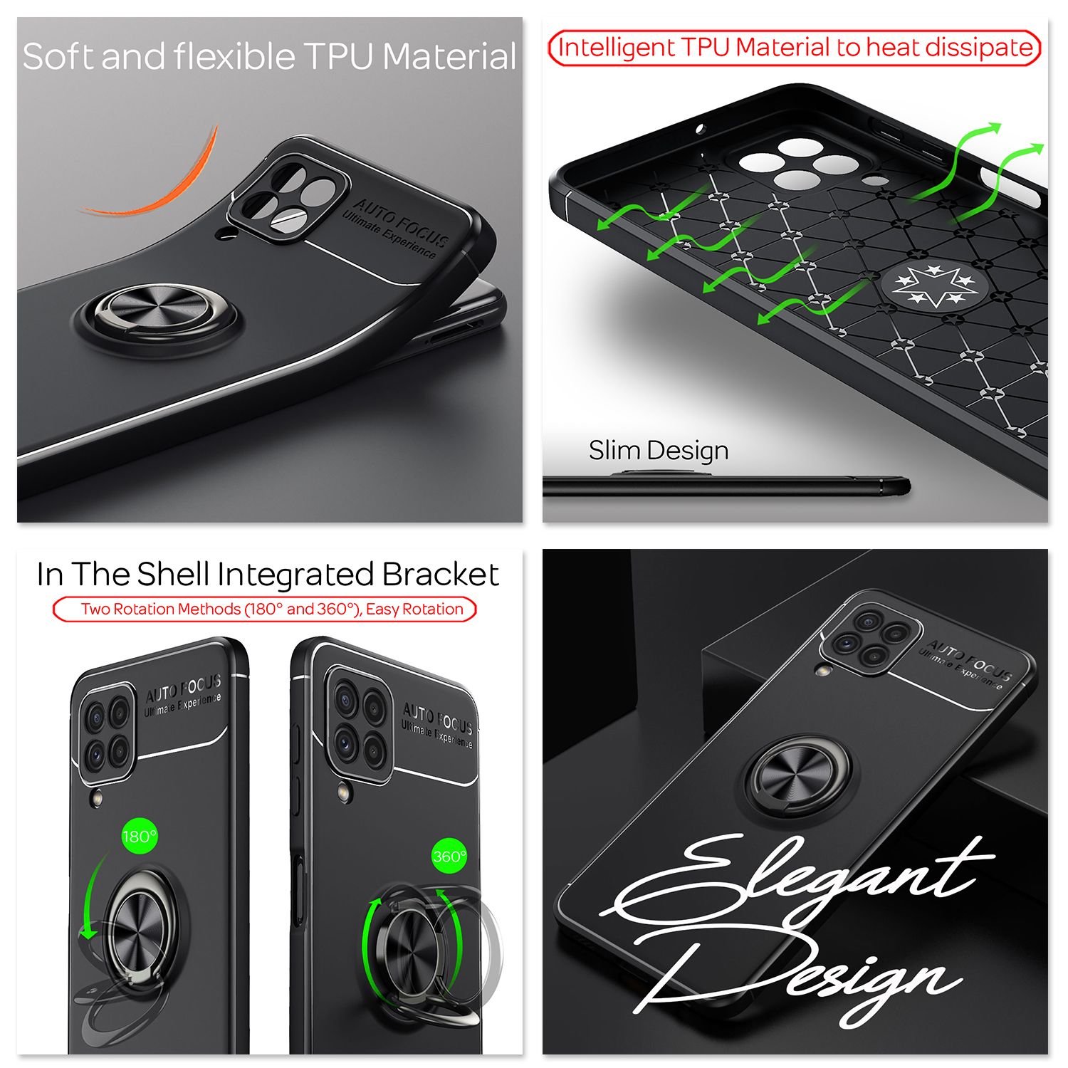 NALIA Matt-Schwarze Ringhülle für Samsung Galaxy A22, 360° Ring für Standfunktion