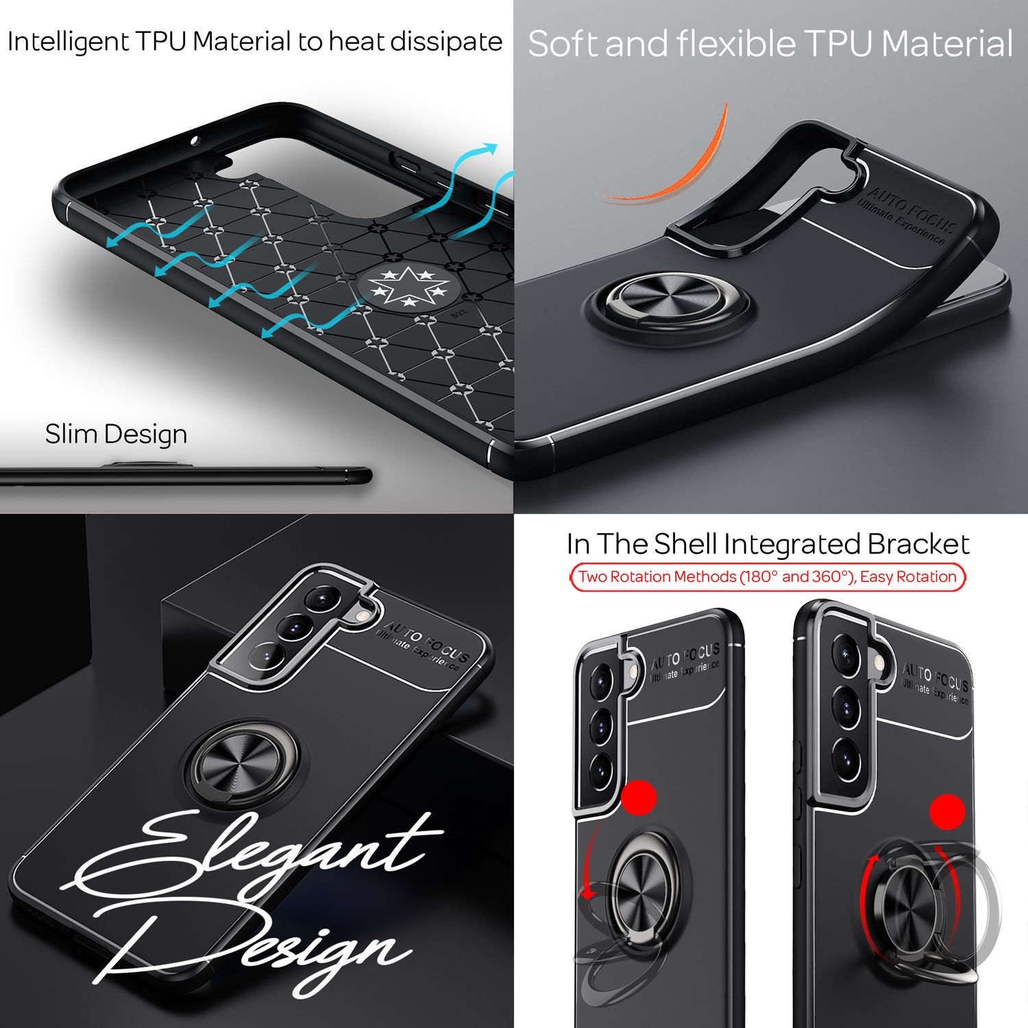 Die Grip360 Handyhülle kombiniert Vielseitigkeit mit einem eleganten, matten Design. Der drehbare 360° Ringhalter bietet sicheren Halt und erleichtert die Einhand-Bedienung deines Smartphones. Gleichzeitig dient der Ring als Kickstand für freihändiges Videoschauen, Lesen oder Videoanrufe.