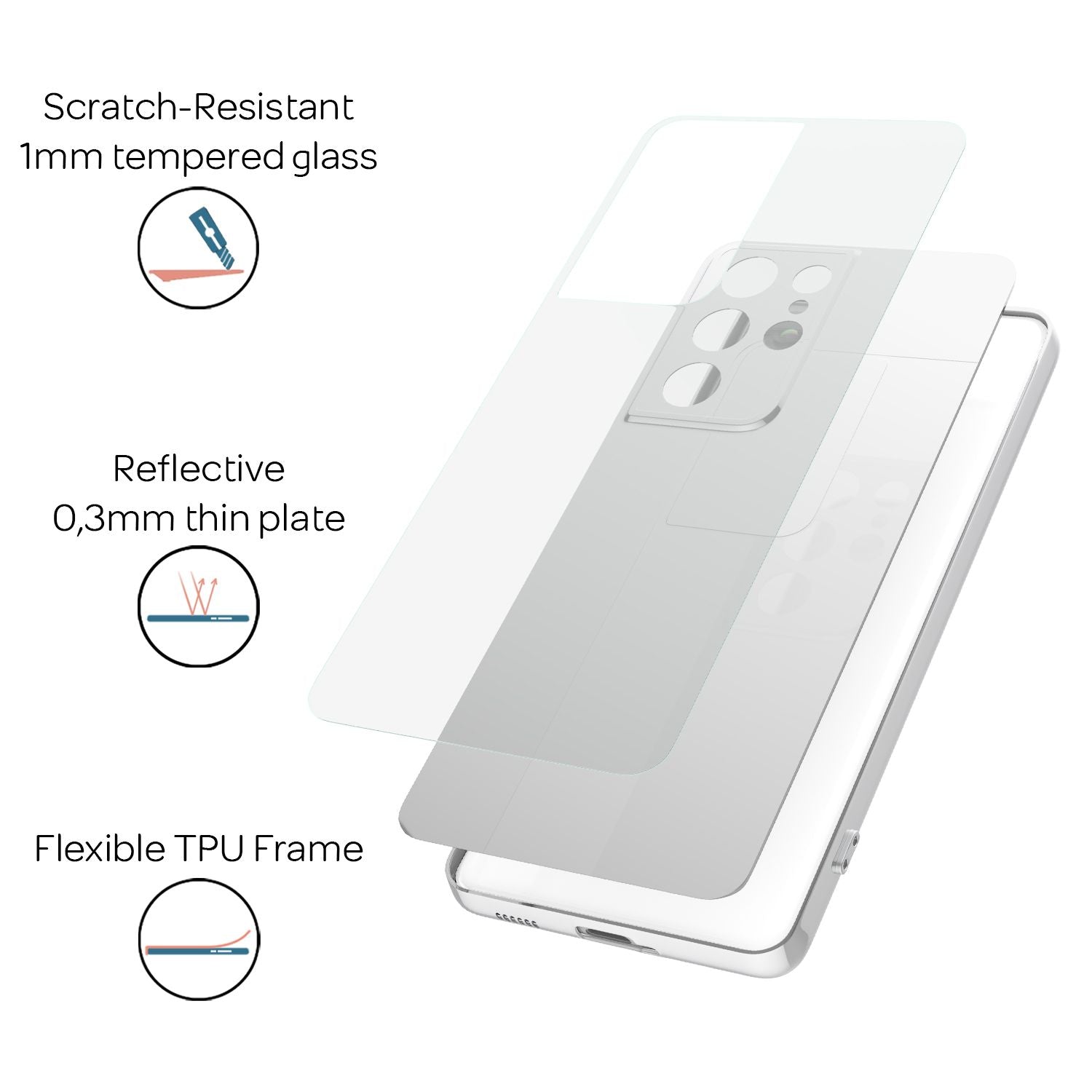 NALIA Spiegel Hartglas Case für Samsung Galaxy S21 Ultra, Klarer Spiegeleffekt Mirror Cover, Kratzfeste 9H Glashülle