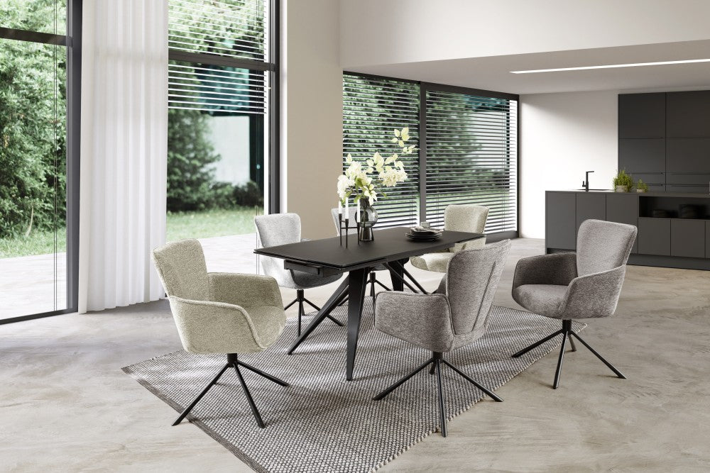 - Gestell: Metall schwarz matt lackiert oder Edelstahl gebürstet