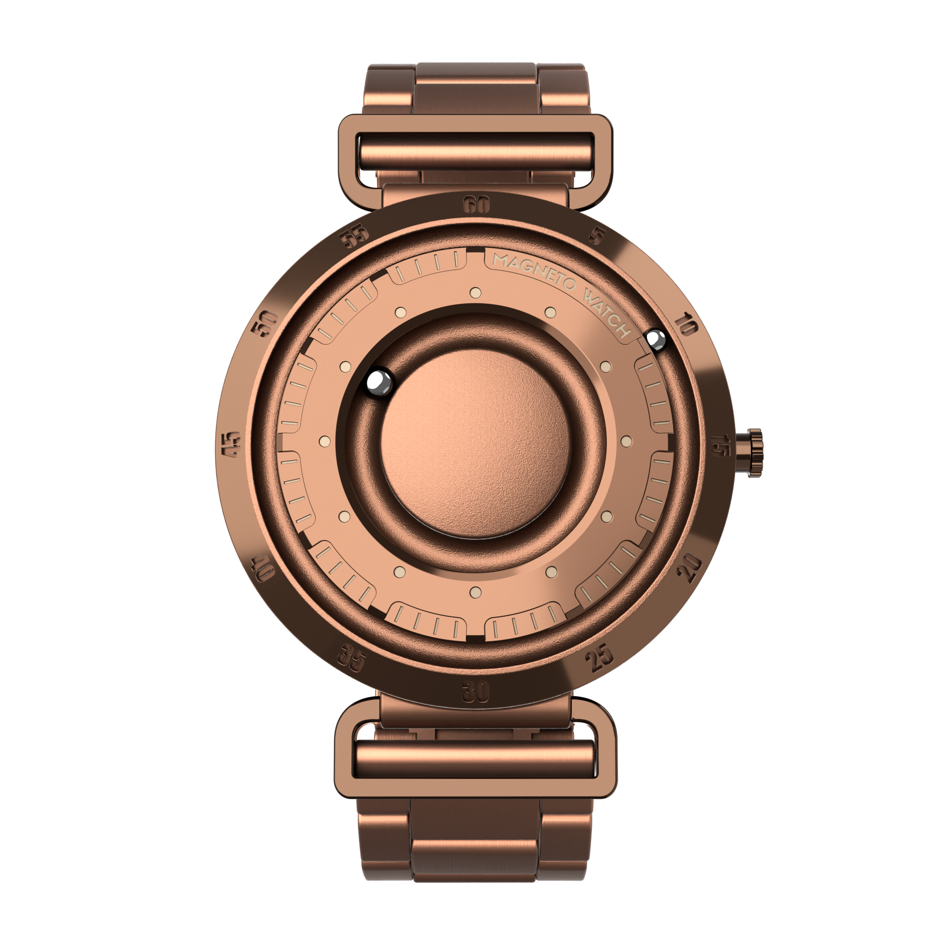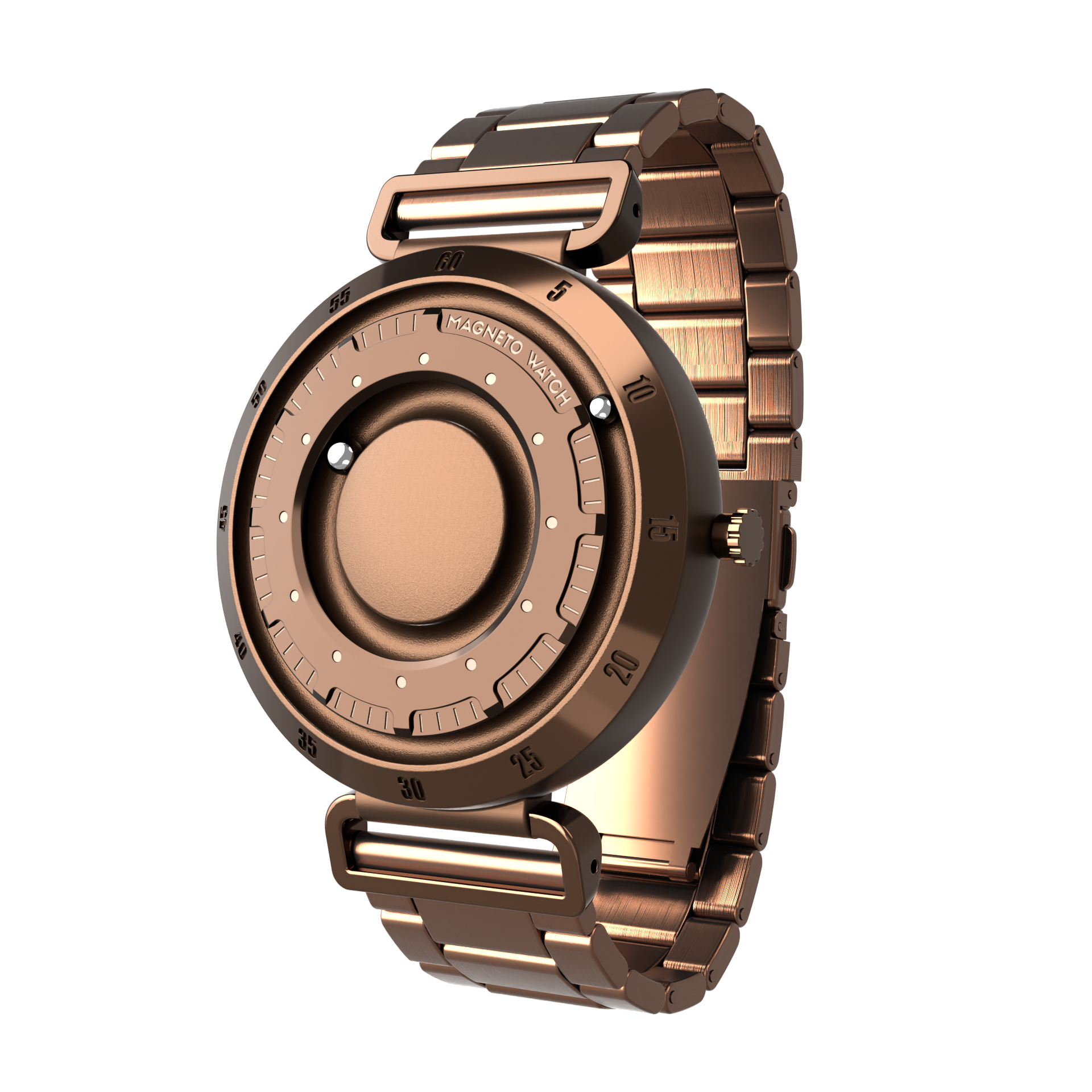 Die Magneto Nexus Coffee vereint modernes Design mit minimalistischer Raffinesse. Ihr teilweise glänzendes Gehäuse aus hochwertiger Alloy und die innovative Magnetzeiger-Technik machen diese Uhr zu einem echten Blickfang. Zwei schwebende Kugeln ersetzen klassische Zeiger und verleihen der Uhr einen futuristischen Touch. Das Coffee farbene Edelstahlarmband mit Gliedern und Faltschließe bietet Komfort und Stil in Perfektion. Gehäusedurchmesser: 43 mm, Gehäusehöhe: 12 mm. Die perfekte Wahl für alle, die Eleganz und Innovation lieben und ein Statement setzen möchten.