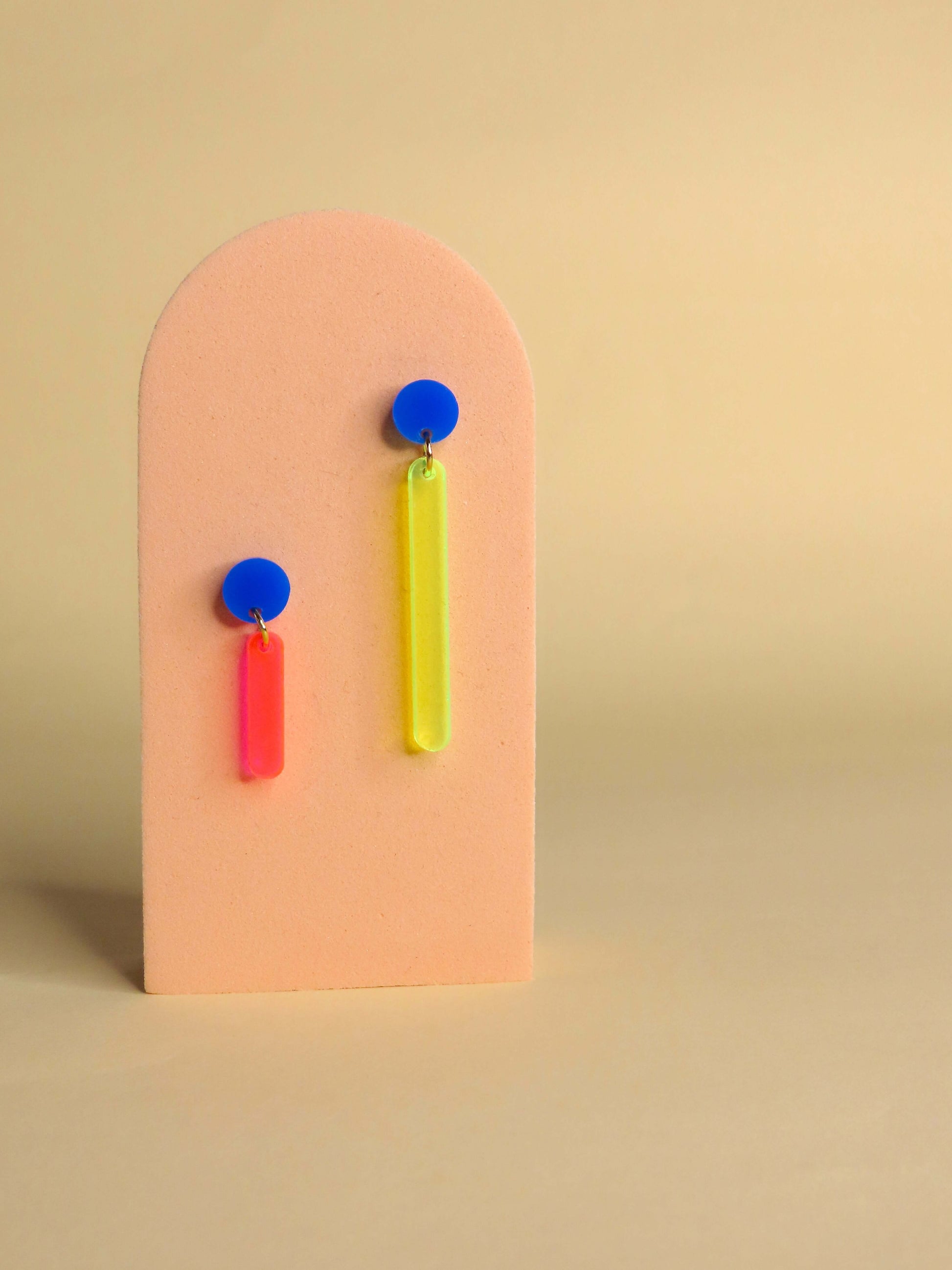 Zwei Längen, zwei leuchtende Farben – ein echtes Statement. Unsere asymmetrischen Neon-Ohrringe sind das Ergebnis einer besonderen Zusammenarbeit mit dem Kunstmuseum Basel.