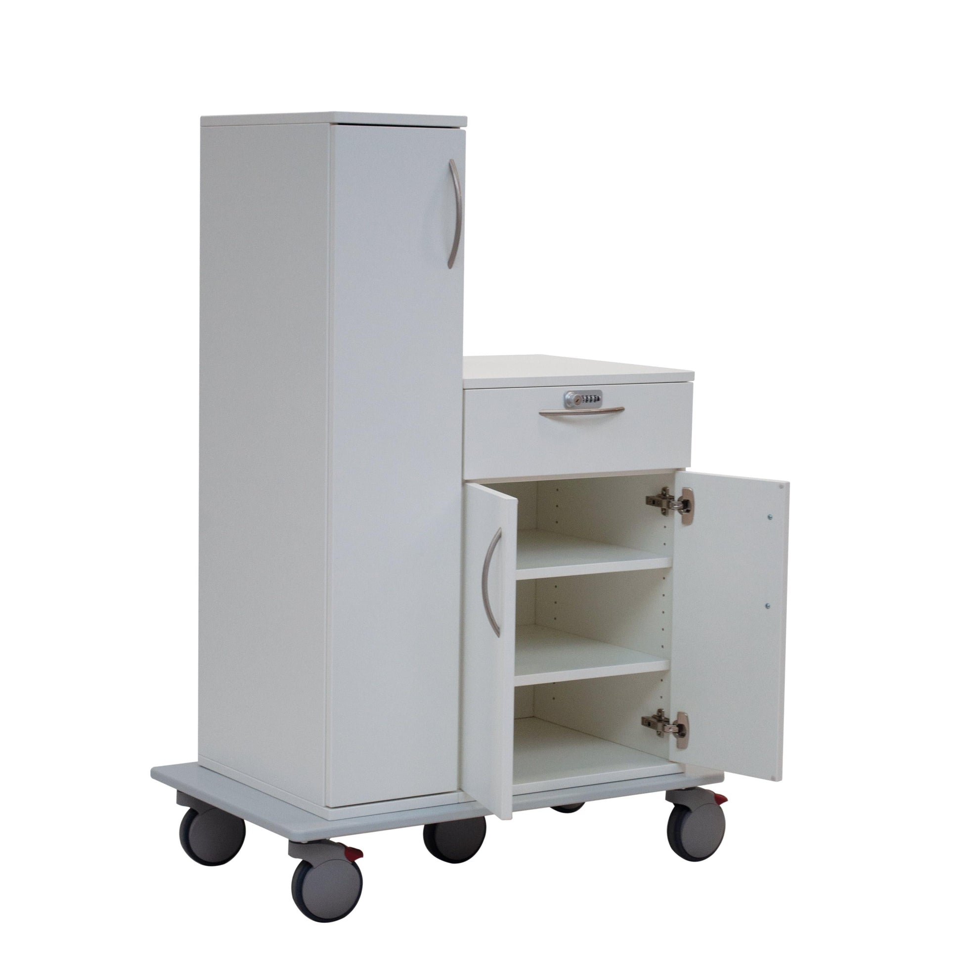 Der Novocal Patientenwagen überzeugt durch sein stabiles Fahrgestell, das aus einer durchgehenden Vollkunststoffplatte besteht. Dieser Wagen ist ideal für den Einsatz in Krankenhäusern und Pflegeeinrichtungen, da er eine einfache Handhabung und hohe Belastbarkeit bietet. Das moderne Design und die hochwertigen Materialien sorgen für Langlebigkeit und Zuverlässigkeit im täglichen Gebrauch. Die durchdachte Konstruktion ermöglicht eine einfache Reinigung und Wartung, was ihn zu einer hygienischen und praktischen Lösung für den Transport von Patientenutensilien macht.
